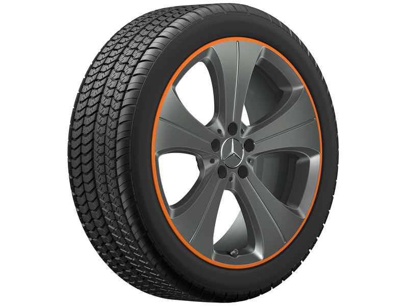 Eigenschaften "5-Speichen-Rad, 50,8 cm (20 Zoll), Felgenhorn orange lackiert, GLB/ GLA, 235/45 R20/, tremolit-metallic, A24740137007Y06"