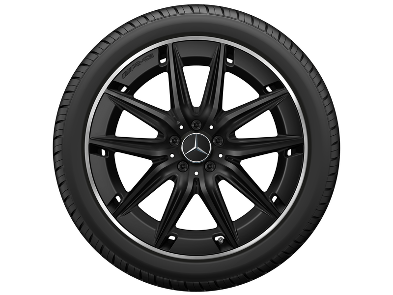 AMG Leichtmetallräder werden ohne Reifen, Radnabenabdeckungen, Ventilkappen, Radschrauben und Radsicherungen geliefert.