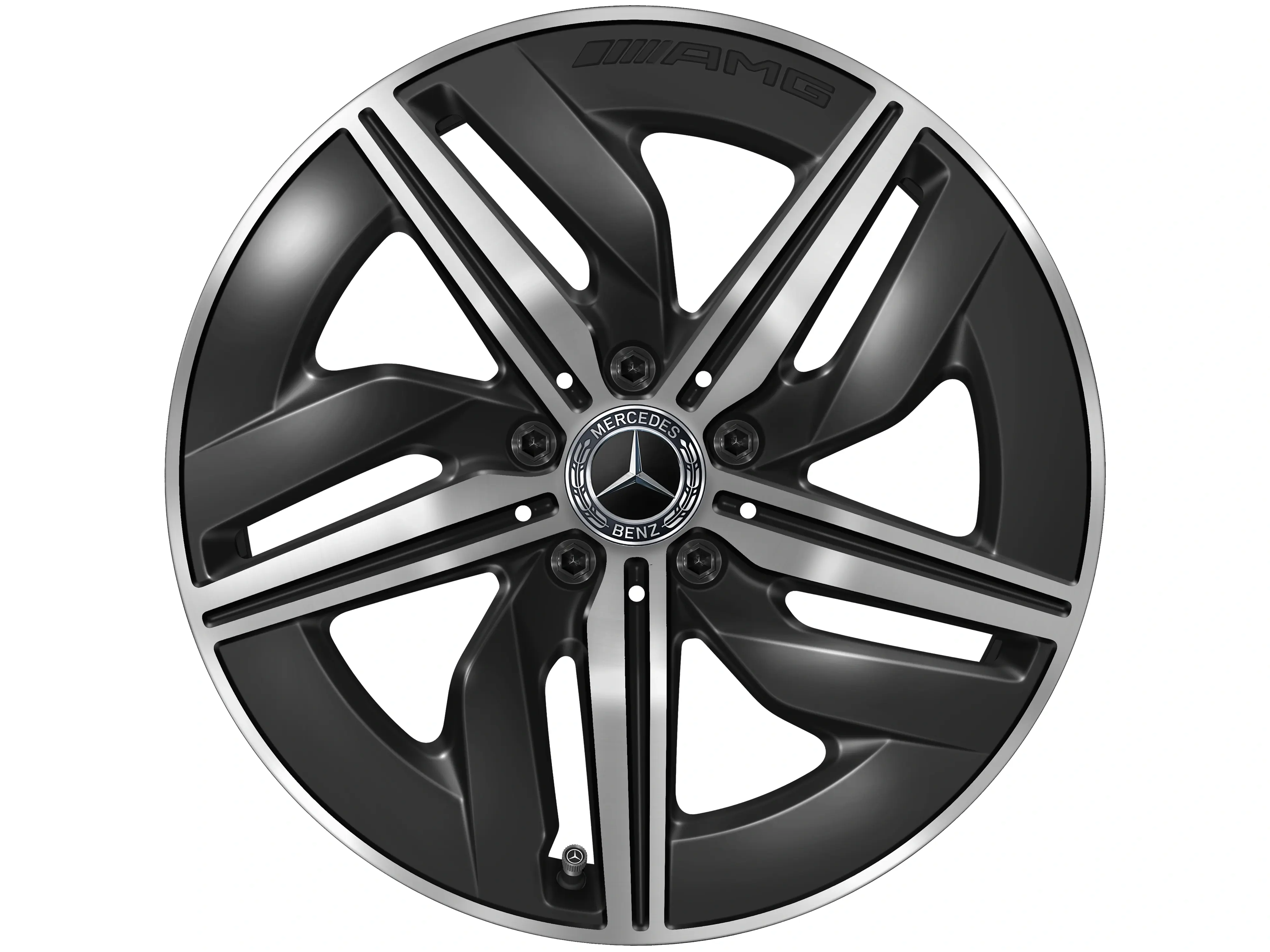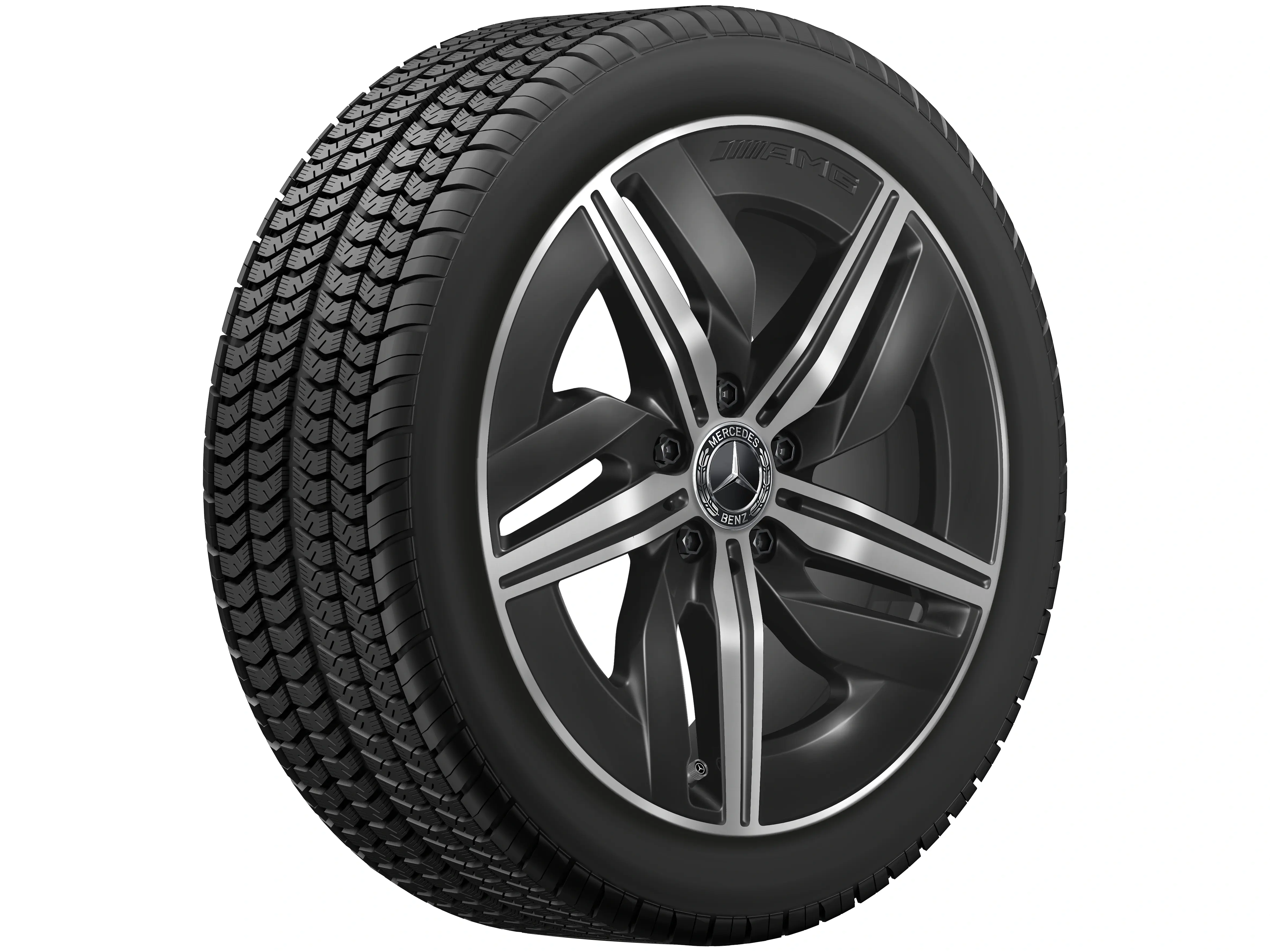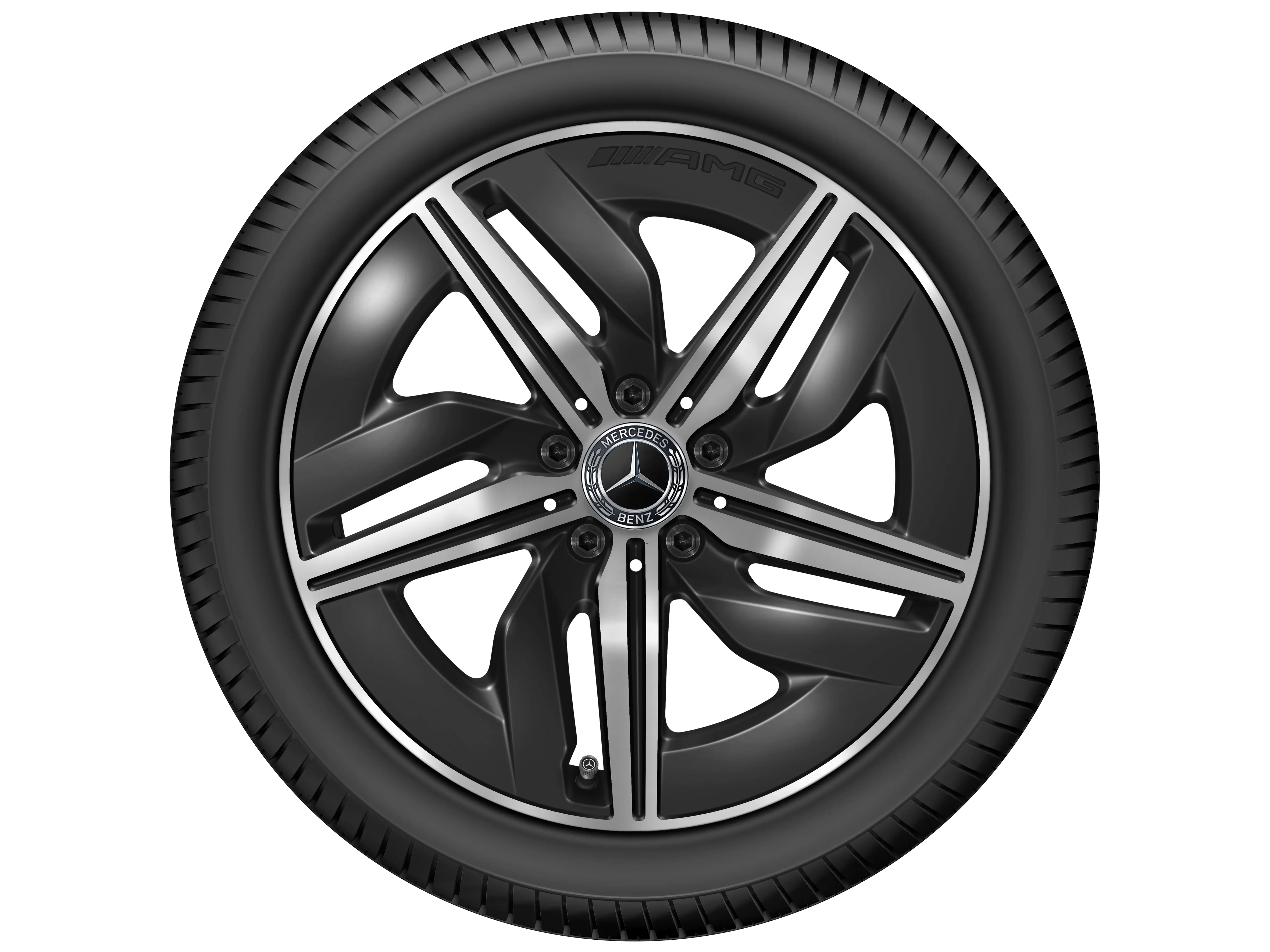 AMG Leichtmetallräder werden ohne Bereifung, Radnabenabdeckungen, Ventilzierkappen, Radschrauben und Radsicherungen ausgeliefert.