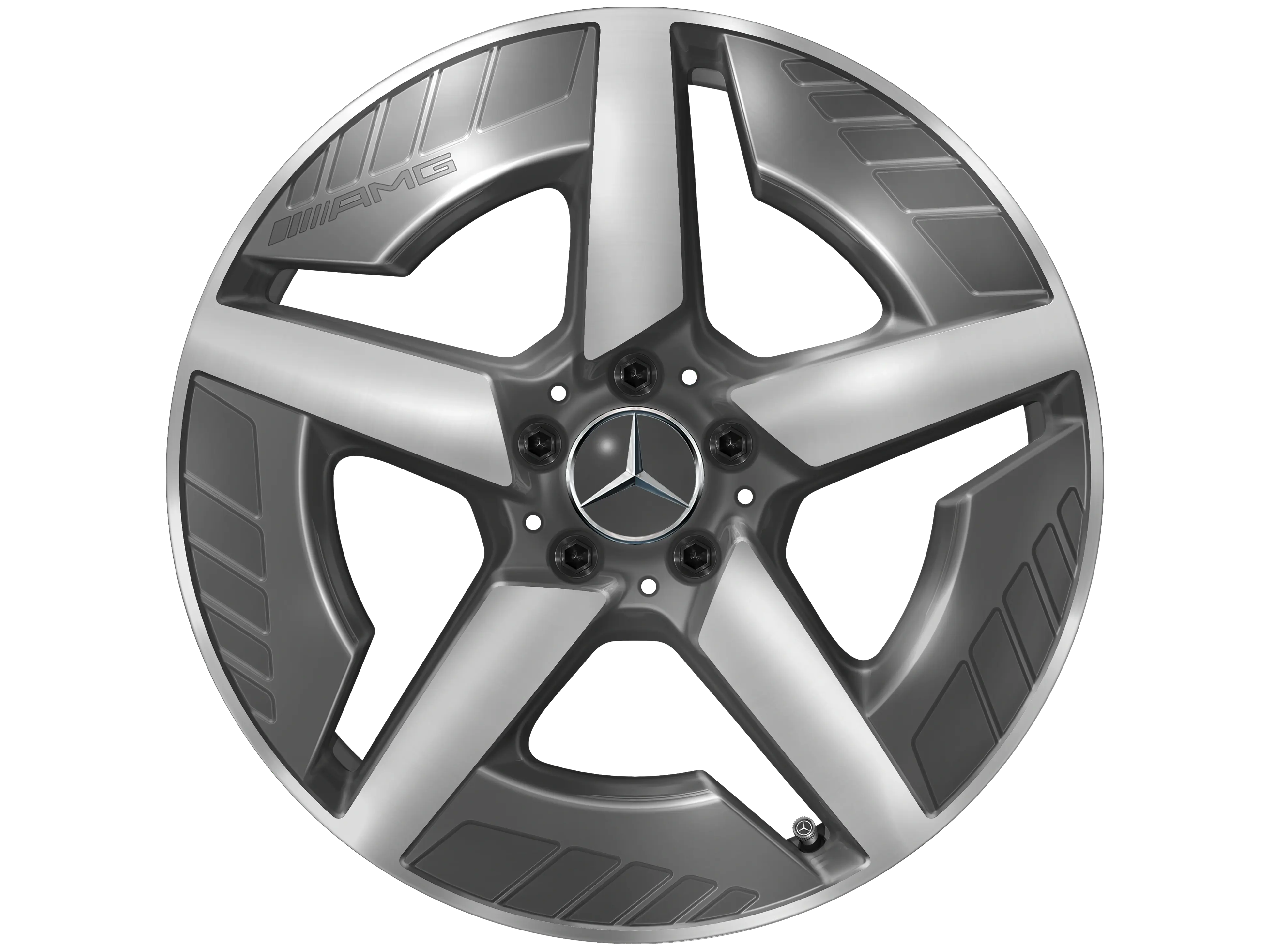 Produktinformationen "AMG Leichtmetallrad, im 5-Speichen-Design, 48,3 cm (19 Zoll), aerodynamisch optimiert, 7,5 J x 19 ET 53,3, tantalgrau, glanzgedreht, A24440116007Y51"