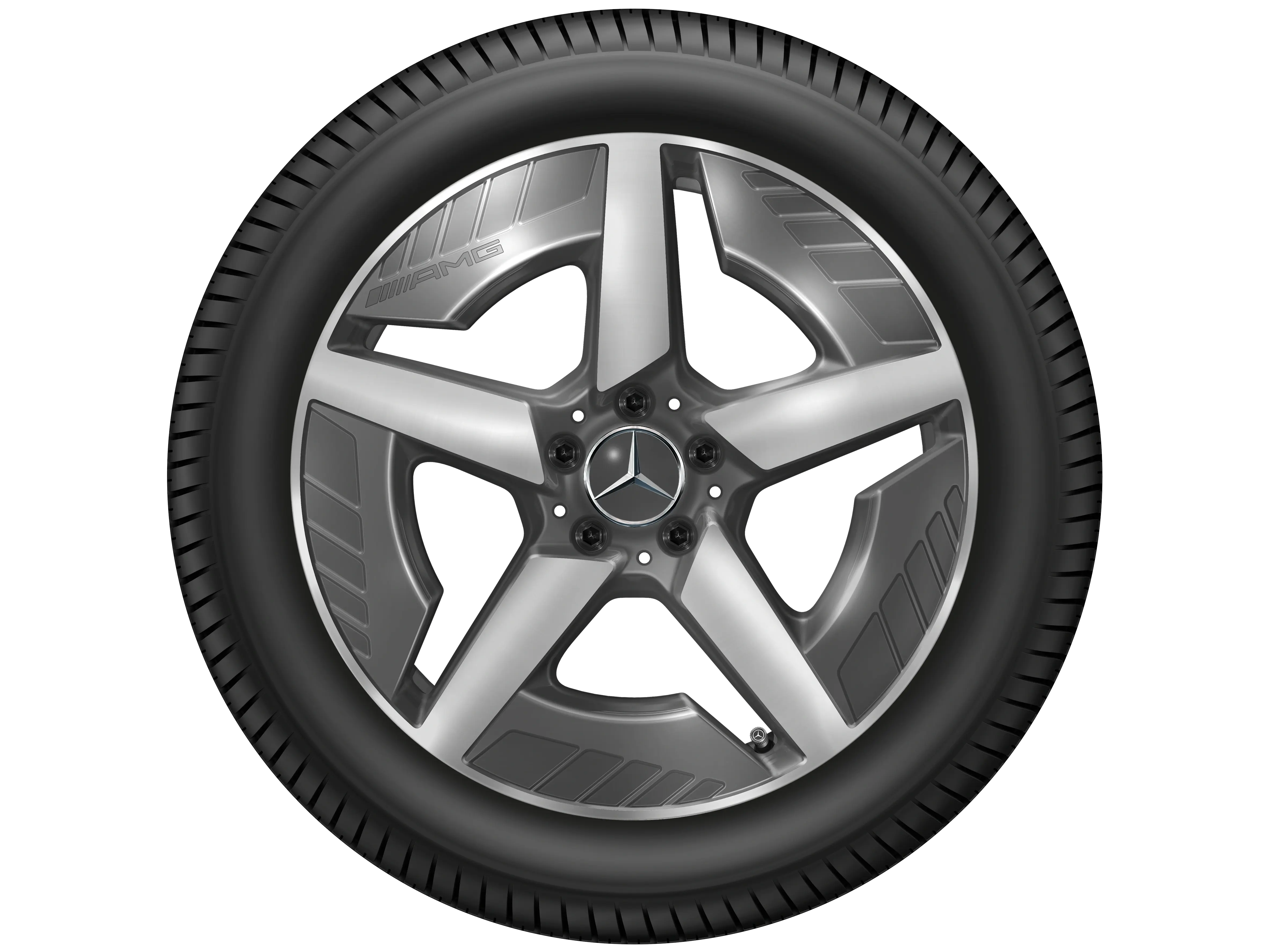 AMG Leichtmetallräder werden ohne Bereifung, Radnabenabdeckungen, Ventilzierkappen, Radschrauben und Radsicherungen ausgeliefert.