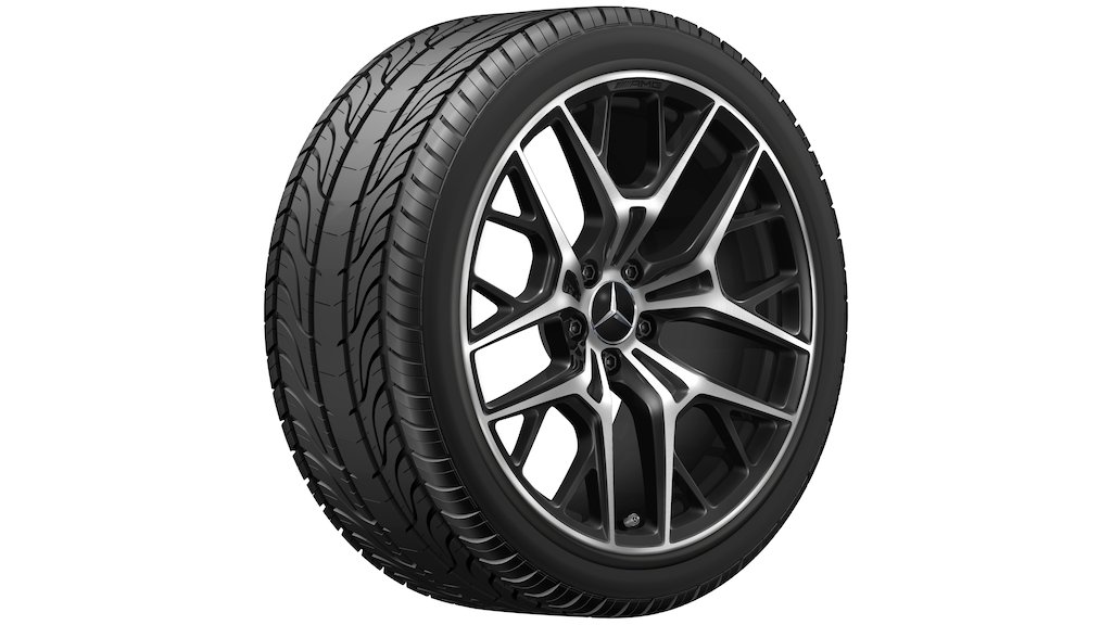 AMG Leichtmetallräder werden ohne Reifen, Radnabenabdeckungen, Ventilkappen, Radschrauben und Radsicherungen geliefert.