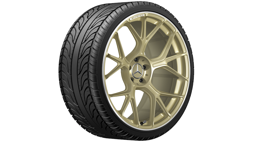AMG Schmiederäder werden ohne Reifen, Radnabenabdeckungen, Ventilkappen, Radbolzen und Radsicherungen geliefert.