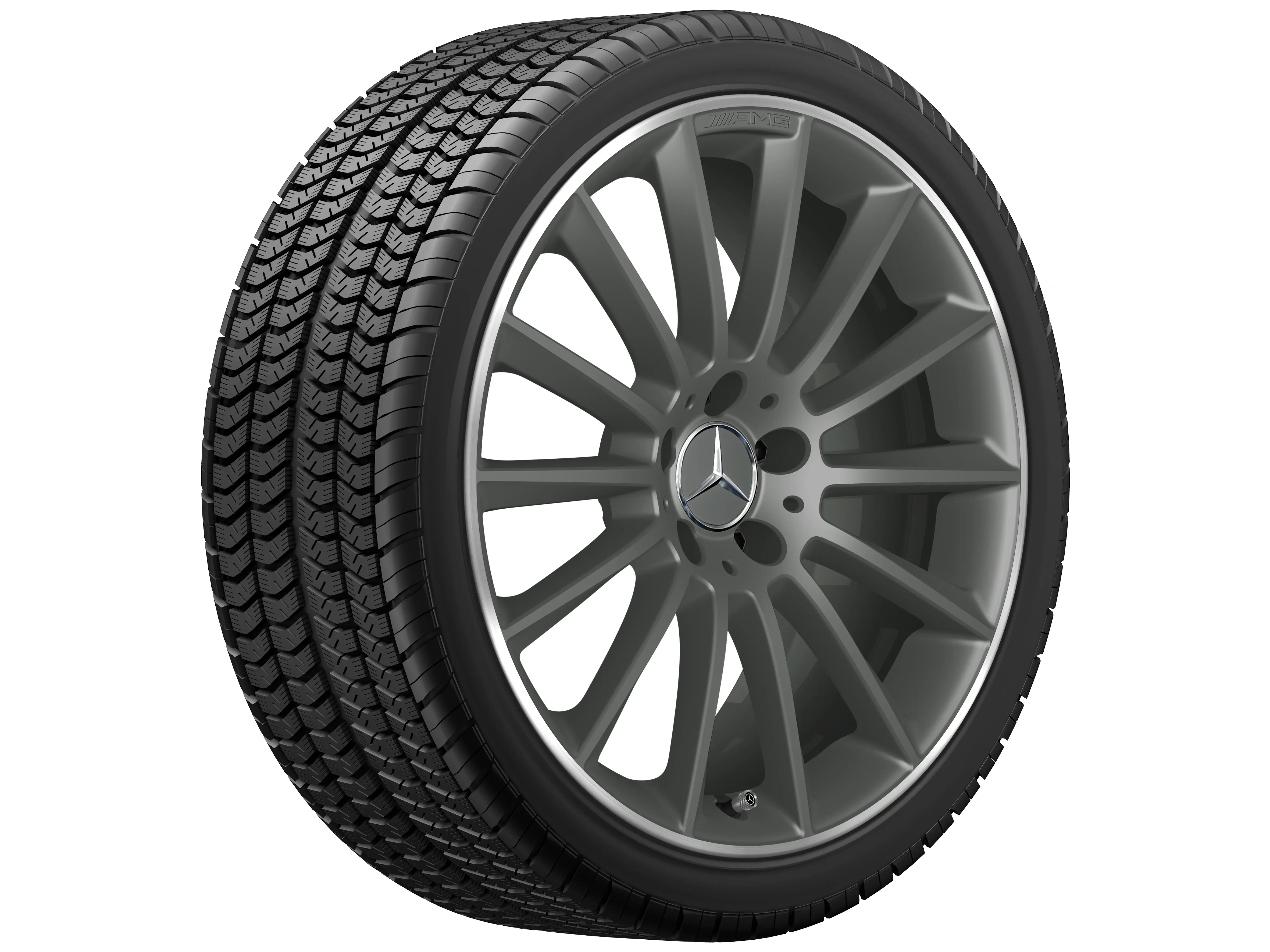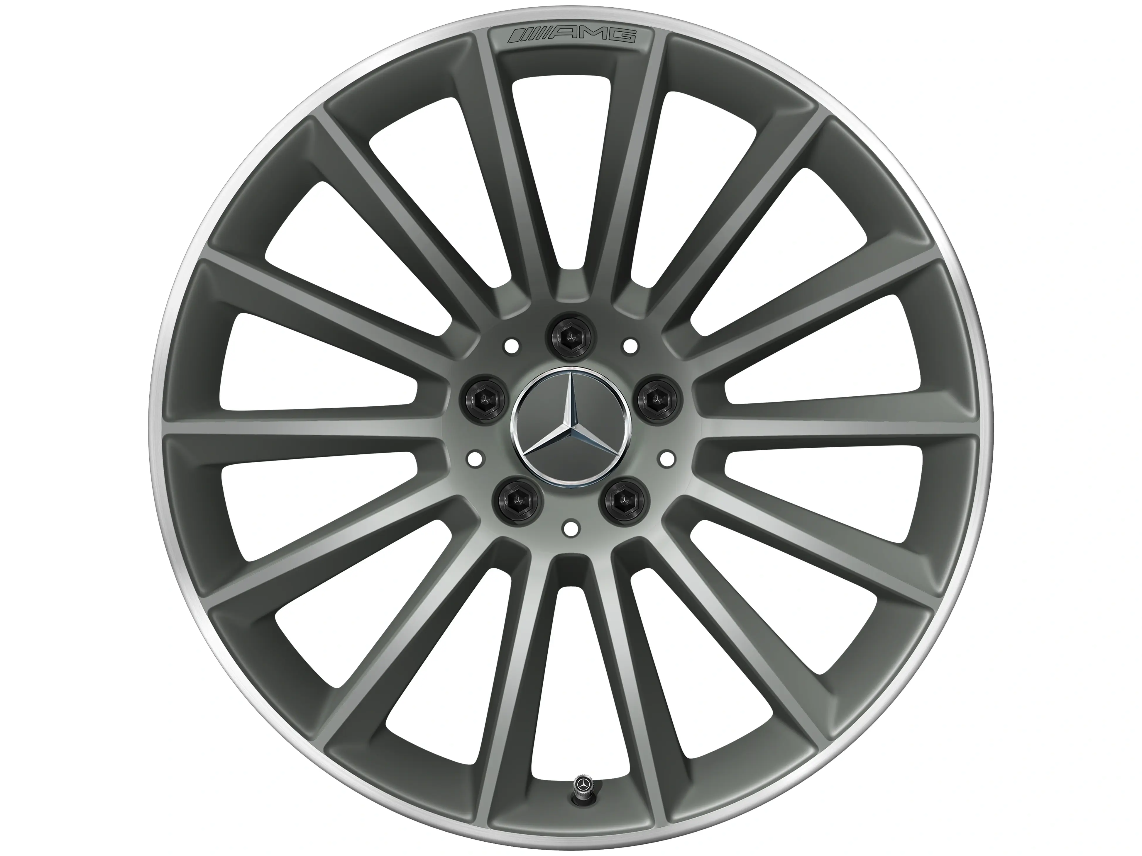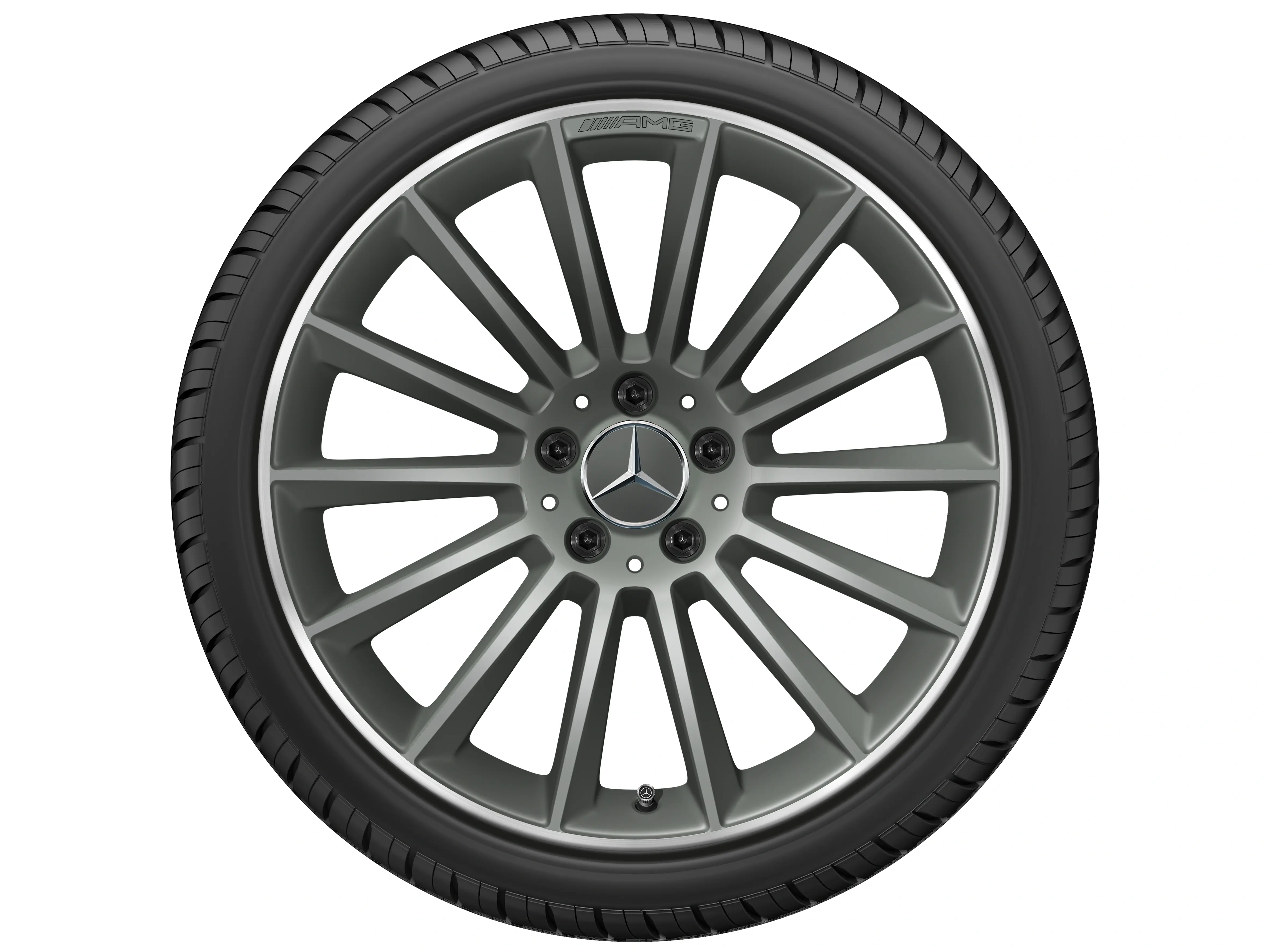 AMG Leichtmetallräder werden ohne Reifen, Radnabenabdeckungen, Ventilkappen, Radschrauben und Radsicherungen geliefert.