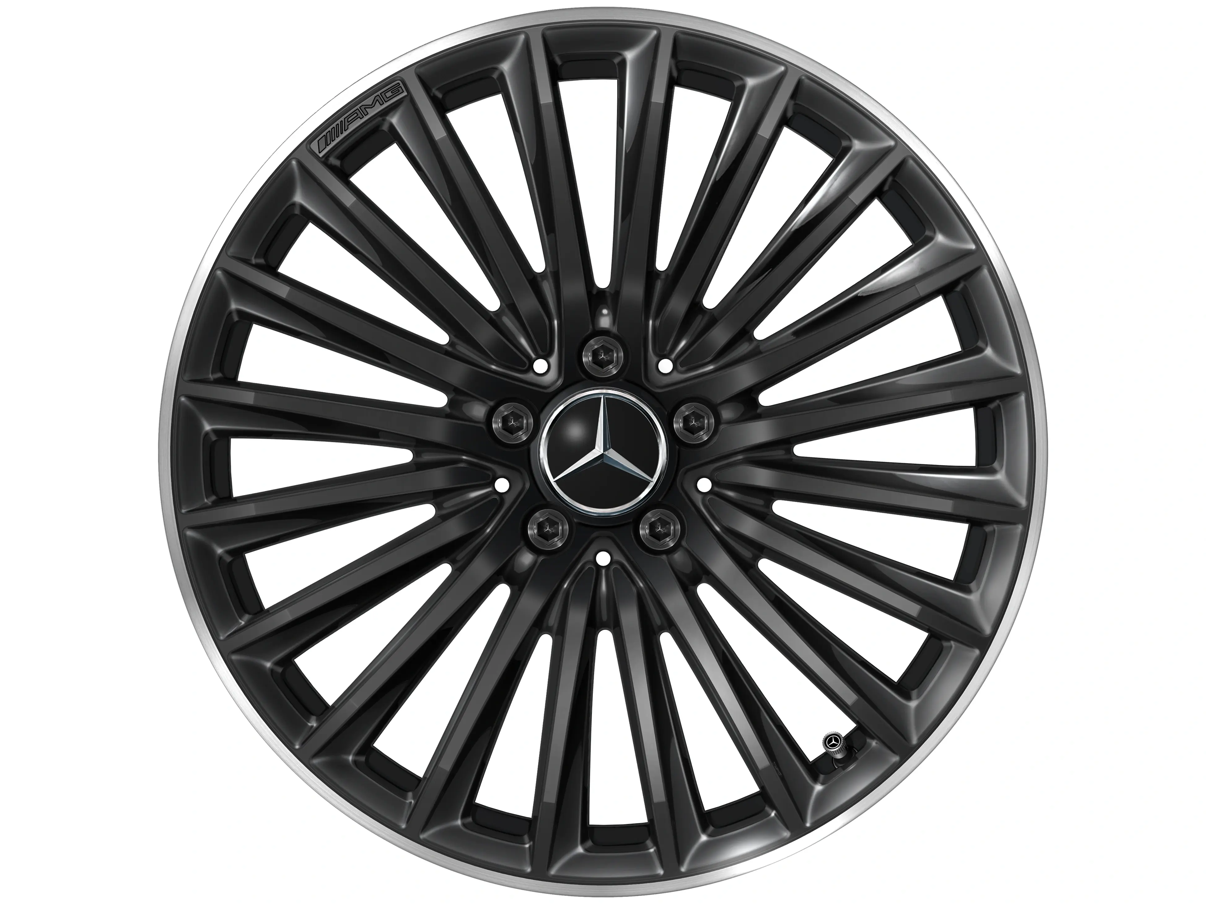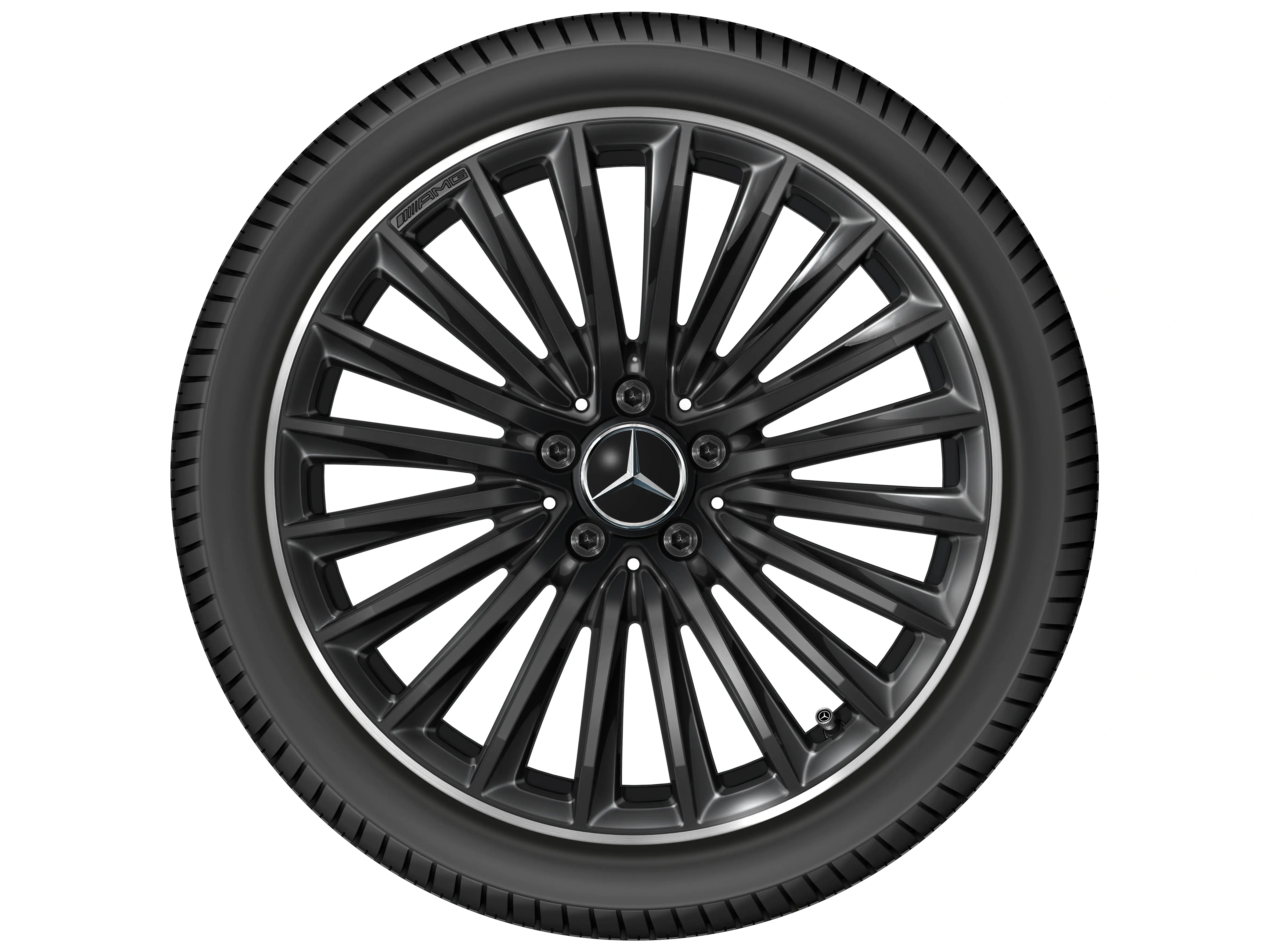 AMG Leichtmetallräder werden ohne Reifen, Radnabenabdeckungen, Ventilkappen, Radschrauben und Radsicherungen geliefert.