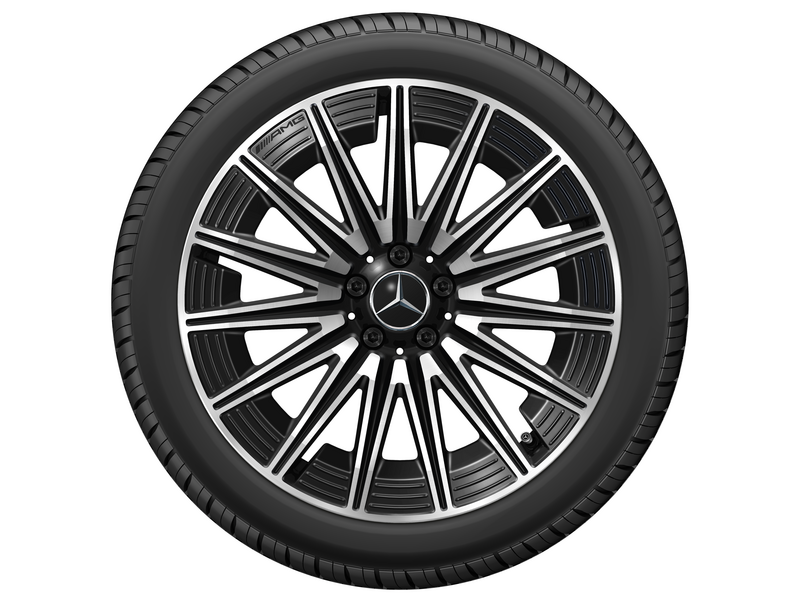 AMG Leichtmetallräder werden ohne Reifen, Radnabenabdeckungen, Ventilkappen, Radschrauben und Radsicherungen geliefert.