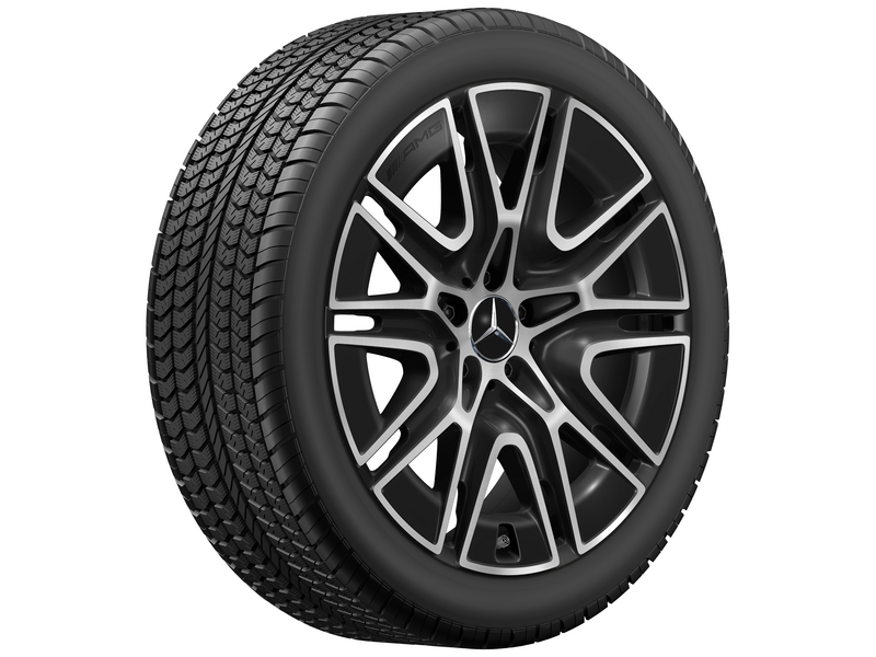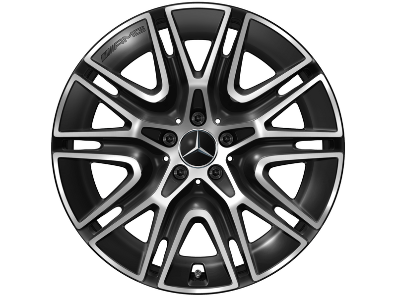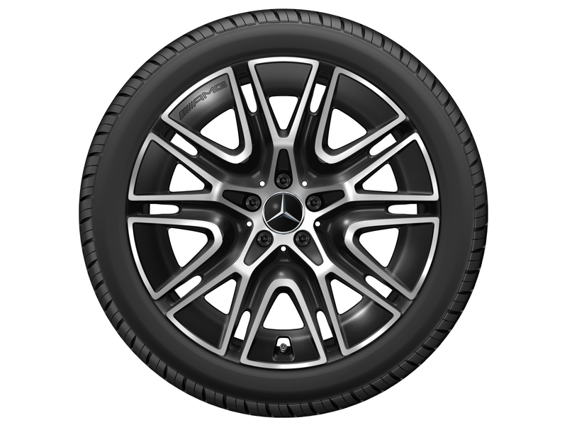 AMG Leichtmetallräder werden ohne Reifen, Radnabenabdeckungen, Ventilkappen, Radschrauben und Radverriegelungen geliefert.