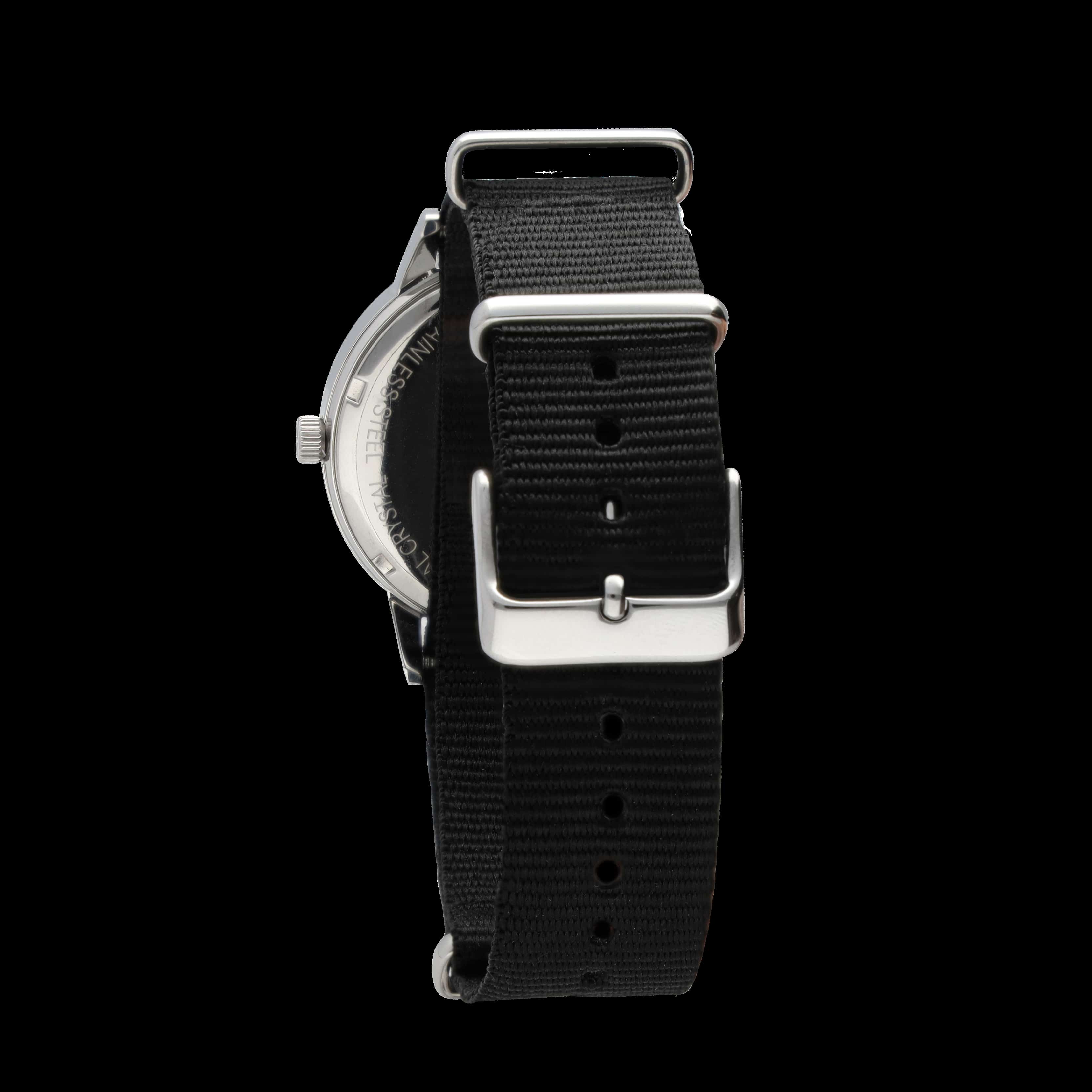 Die sportlich-schicke Armbanduhr sorgt dafür, dass Sie immer die Zeit im Auge behalten. Die Uhr für Herren kommt mit einem robusten Edelstahlgehäuse und einer schwarz PVD-beschichteten Lünette. Sie bietet verschiedene Trageoptionen dank ihres leichten Nylon-Natostraps. Das Zifferblatt zeigt einen ansprechenden Farbverlauf von Blau zu Schwarz, der optisch beeindruckt. Für den nötigen Schutz sorgt gehärtetes Mineralglas. Die Herrenuhr ist wasserdicht bis zu einer Tiefe von 5 ATM und wird von einem japanischen Miyota Quarzuhrwerk betrieben.