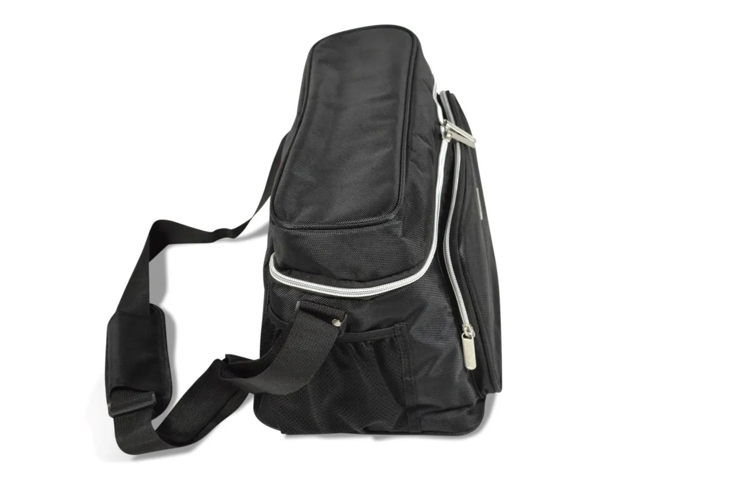 Die Pro.Line™-Serie ist die exklusive Produktlinie von Car-Bags.com, die sich durch ihr einzigartiges Design und mehrere besondere Merkmale auszeichnet. Produktmerkmale:Hochwertige Rollentasche mit Teleskopstangengriff und doppelt gelagerte Gummirädern. Breite x Höhe x Länge = 33 x 23 x 75 cm. Spezielles, feinmaschiges Gewebe, stilvoll akzentuiert mit Metallteilen in seidenglänzender Titanfarbe. Kontrastierendes dunkelgraues Innenfutter. Wasserabweisende Reißverschlüsse. Umfangreiche Funktionalität durch zwei Reißverschlussfächer außen und mehrere Staufächer innen, die teilweise herausnehmbar sind. Rollentaschen mit Teleskopgriff mit Verriegelungssystem. Verschiedene Protektoren gewährleisten dauerhaften Schutz am Bodenteil und an empfindlichen Rändern und Ecken.Innenfutter mit einer zusätzlichen Schicht aus robustem Schaumstoff, für maximalen Schutz des Inhalts. Reißverschlüsse mit Metallösen, sodass sie sich mit kleinen Schlössern abschließen lassen. 2 oder 3 Zurrgurte an der Innenseite, um den Inhalt zu fixieren.