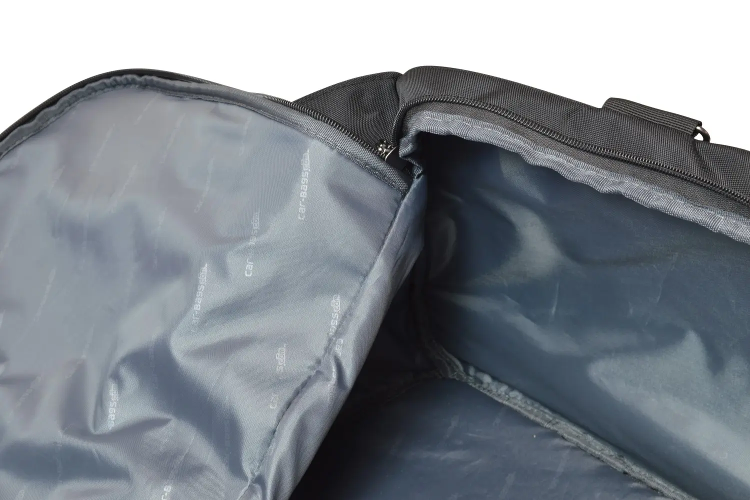 Bequemes und schnelles Packen:Packen war noch nie so bequem und schnell, weil Sie wissen: wenn es in den Car-Bags.com™ Reisetaschenset hineinpasst, dann passt es automatisch in den Kofferraum. Die meisten Car-Bags Sets bestehen aus einer unteren Schicht von praktischen Rollentaschen mit Rädern und Teleskopgriff und einer oberen Schicht von dazu passenden Handgepäcktaschen. Ein Car-Bags Reisetaschenset ist exakt auf jedes Automodell zugeschnitten. Das Set wird also nicht zusammengestellt aus einer festen Palette von Standardtaschen, sondern die Größen der Trolley-Taschen und Reisetaschen sind genau auf den Kofferraum abgestimmt. Dadurch wird der Kofferraum optimal in Höhe, Breite und Länge genutzt. Car-Bags.com Reisetaschen sind meistens 30-35 cm breit, sodass gefaltete Kleidung gut hineinpasst. Unsere Taschen sind nicht zu groß, weil große Taschen schwer und unhandlich sind. Darüber hinaus neigt sich den Inhalt von großen Taschen einfacher zum Verheddern. Produktmerkmale: Jedes Set ist genau auf das Automodell zugeschnitten. Verschiedene Protektoren gewährleisten dauerhaften Schutz am Bodenteil und an empfindlichen Rändern und Ecken jeder Tasche. Alle Taschen sind mit einem praktischen Reißverschlussfach ausgestattet, das von außen zugänglich ist. Alle Taschen haben ein schwarzes Innenfutter mit einer zusätzlichen Schicht aus robustem Schaumstoff, für maximalen Schutz des Inhalts. Alle Reißverschlüsse sind mit Metallösen versehen, sodass sie sich mit kleinen Schlössern abschließen lassen. Jede Rollentasche ist mit einem Teleskopstangengriff und doppelt gelagerte Gummirädern ausgestattet. Jede Rollentasche hat ein zusätzliches Reißverschlussfach an der Innenseite. Jede Rollentasche hat an der Innenseite 2 oder 3 Zurrgurte, um den Inhalt zu fixieren.Jede Handgepäcktasche hat einen verstellbaren Schulterriemen. 3 Jahre Garantie auf Herstellungsfehler. Sicheres Reisen:Mit einem Car-Bags Set nutzen Sie Ihr Kofferraum optimal und brauchen Sie weniger gefährliches, loses Gepäck im Fahrgastraum unter zu bringen. Kompakt zu verstauen:Ein Car-Bags Set lässt sich vollständig zusammenfalten – im Gegenteil zu Hartschalenkoffern – und ist daher einfach im Haus zu verstauen. Doch auch am Reiseziel ist es äußerst praktisch, wenn die leeren Taschen so wenig Platz wie möglich einnehmen. Top Qualität: Alle Car-Bags Reisetaschen sind aus hochwertigem Polyestergewebe gefertigt. Stark, langlebig, wasserabweisend und leicht zu reinigen. Das Innenfutter mit einer Zwischenschicht aus robuster Schaumstofffolie bietet maximalen Schutz des Inhalts. Jeder Trolley ist mit zweiseitig gelagerten Rädern mit Gummireifen ausgestattet, um ein ruhiges und sanftes Rollen während der gesamten Lebensdauer der Tasche zu gewährleisten. Car-Bags garantiert 3 Jahre Garantie auf Produktionsfehler.