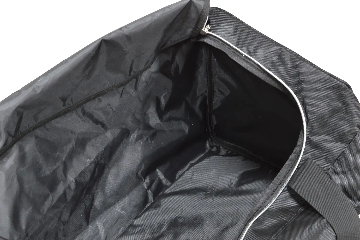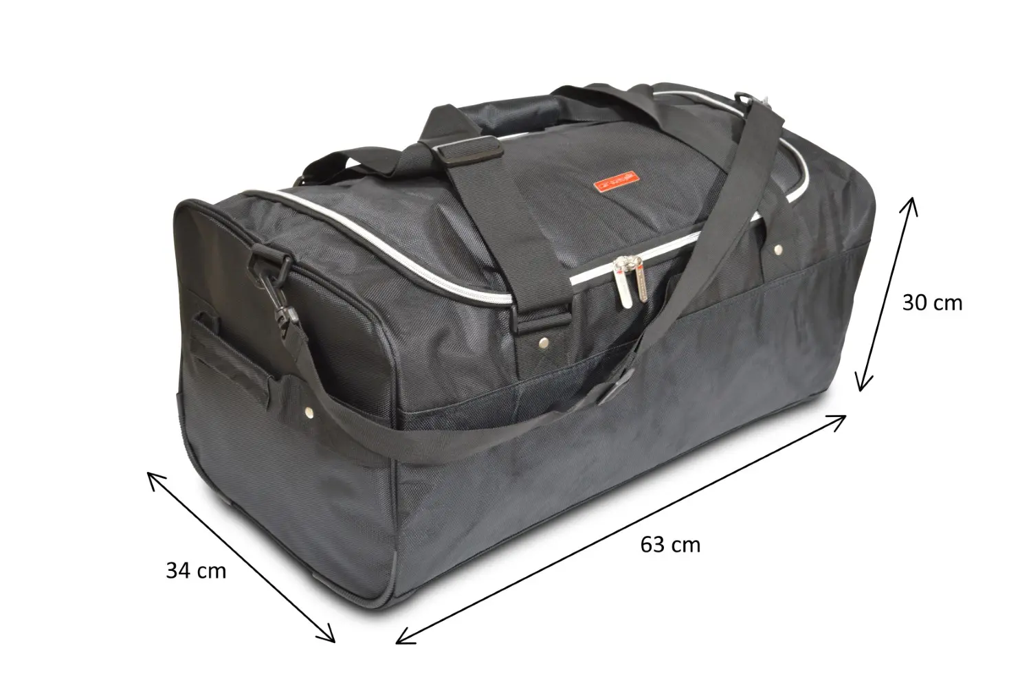 Bequemes und schnelles Packen:Packen war noch nie so bequem und schnell, weil Sie wissen: wenn es in den Car-Bags.com™ Reisetaschenset hineinpasst, dann passt es automatisch in den Kofferraum. Die meisten Car-Bags Sets bestehen aus einer unteren Schicht von praktischen Rollentaschen mit Rädern und Teleskopgriff und einer oberen Schicht von dazu passenden Handgepäcktaschen. Ein Car-Bags Reisetaschenset ist exakt auf jedes Automodell zugeschnitten. Das Set wird also nicht zusammengestellt aus einer festen Palette von Standardtaschen, sondern die Größen der Trolley-Taschen und Reisetaschen sind genau auf den Kofferraum abgestimmt. Dadurch wird der Kofferraum optimal in Höhe, Breite und Länge genutzt. Car-Bags.com Reisetaschen sind meistens 30-35 cm breit, sodass gefaltete Kleidung gut hineinpasst. Unsere Taschen sind nicht zu groß, weil große Taschen schwer und unhandlich sind. Darüber hinaus neigt sich den Inhalt von großen Taschen einfacher zum Verheddern. Produktmerkmale: Jedes Set ist genau auf das Automodell zugeschnitten. Verschiedene Protektoren gewährleisten dauerhaften Schutz am Bodenteil und an empfindlichen Rändern und Ecken jeder Tasche. Alle Taschen sind mit einem praktischen Reißverschlussfach ausgestattet, das von außen zugänglich ist. Alle Taschen haben ein schwarzes Innenfutter mit einer zusätzlichen Schicht aus robustem Schaumstoff, für maximalen Schutz des Inhalts. Alle Reißverschlüsse sind mit Metallösen versehen, sodass sie sich mit kleinen Schlössern abschließen lassen. Jede Rollentasche ist mit einem Teleskopstangengriff und doppelt gelagerte Gummirädern ausgestattet. Jede Rollentasche hat ein zusätzliches Reißverschlussfach an der Innenseite. Jede Rollentasche hat an der Innenseite 2 oder 3 Zurrgurte, um den Inhalt zu fixieren.Jede Handgepäcktasche hat einen verstellbaren Schulterriemen. 3 Jahre Garantie auf Herstellungsfehler. Sicheres Reisen:Mit einem Car-Bags Set nutzen Sie Ihr Kofferraum optimal und brauchen Sie weniger gefährliches, loses Gepäck im Fahrgastraum unter zu bringen. Kompakt zu verstauen:Ein Car-Bags Set lässt sich vollständig zusammenfalten – im Gegenteil zu Hartschalenkoffern – und ist daher einfach im Haus zu verstauen. Doch auch am Reiseziel ist es äußerst praktisch, wenn die leeren Taschen so wenig Platz wie möglich einnehmen. Top Qualität: Alle Car-Bags Reisetaschen sind aus hochwertigem Polyestergewebe gefertigt. Stark, langlebig, wasserabweisend und leicht zu reinigen. Das Innenfutter mit einer Zwischenschicht aus robuster Schaumstofffolie bietet maximalen Schutz des Inhalts. Jeder Trolley ist mit zweiseitig gelagerten Rädern mit Gummireifen ausgestattet, um ein ruhiges und sanftes Rollen während der gesamten Lebensdauer der Tasche zu gewährleisten. Car-Bags garantiert 3 Jahre Garantie auf Produktionsfehler.