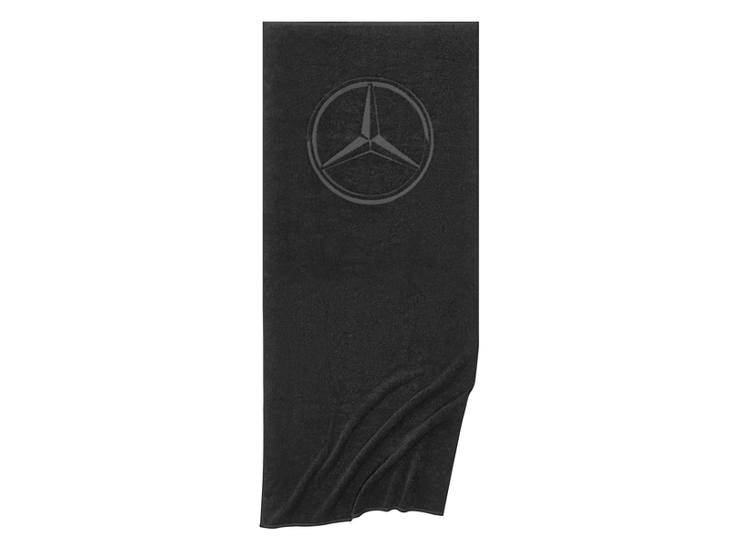 Mit dem edlen schwarzen Dusch- und Strandtuch von Mercedes-Benz by möve können Sie sich auf Ihren nächsten Urlaub freuen. Das aus 100% Baumwolle gefertigte Badetuch ist in klassisch-schlichtem Design gehalten und wird durch einen eingewebten Mercedes Stern zusätzlich aufgewertet. Ob für den Strandurlaub oder Sonnenstunden am heimischen Badesee: Dieses Strandtuch ist ein vielseitiger Begleiter und besticht durch seine Größe von ca. 80 x 180 cm. Mit "made in Germany" Qualität ist es ein echter Hingucker.