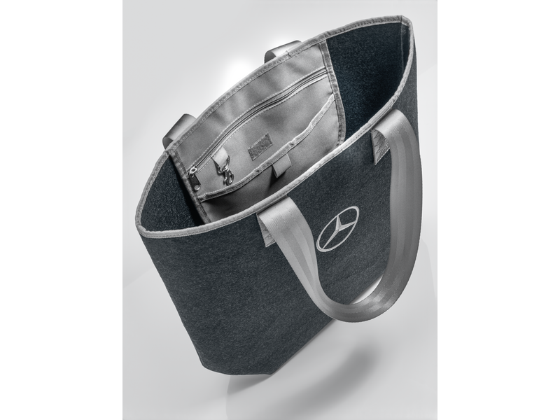 Shoppen wird jetzt noch einfacher und bequemer mit unserer grauen Einkaufstasche aus Filz. Sie ist mit einem gesticktem, schwarzem Logo versehen und bietet viel Platz für alle Ihre Einkäufe. Dank der Innentasche mit Reißverschluss sind Ihre Gegenstände sicher verstaut. Ein praktischer Karabinerhaken ermöglicht die Befestigung Ihrer Schlüssel. Dank der Tragegriffe aus Gurtmaterial ist die Tasche zudem angenehm zu tragen. Maße: ca. 26 x 14 x 40 cm. Farbe: grau. Material: 100 % Polyester.
