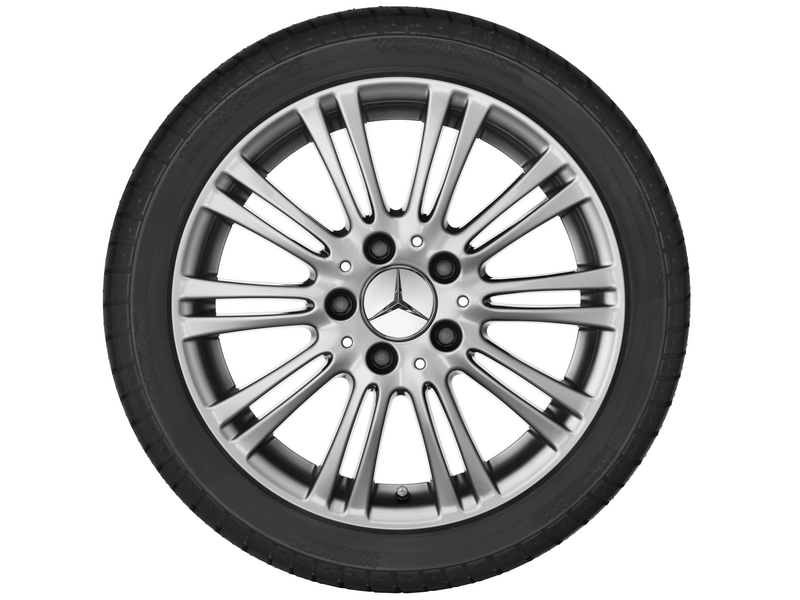 Mercedes-Benz light-alloy wheels guarantee maximum safety and a unique appearance. Each wheel design is precisely matched to the vehicle based on strict Mercedes-Benz guidelines for load and dimensions and must pass numerous tests. Bright-turned wheels also withstand highly corrosive salt spray and a 28-day climate change program before they can be included in the range as an original Mercedes-Benz light-alloy wheel. Our scope of delivery includes the wheels without tires, wheel hub caps, valve caps, wheel bolts and wheel locks. You can find these parts separately in the store or you can order a complete wheel. If you are unsure whether the wheel fits your vehicle, we will be happy to help you! Simply start the online chat or send us your request for a free fitment check.