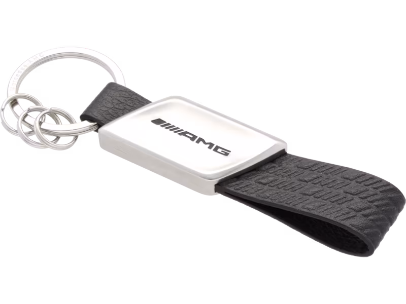 Gone are the days when you had to spend time searching for misplaced keys. Because the AMG key fob is the perfect place to keep all your important keys in one place. The key fob with diamond-shaped metal part and red loop made of vegan apple leather is equipped with a larger flat split ring. The space is complemented by three additional mini split rings for easy attachment and removal of individual keys.