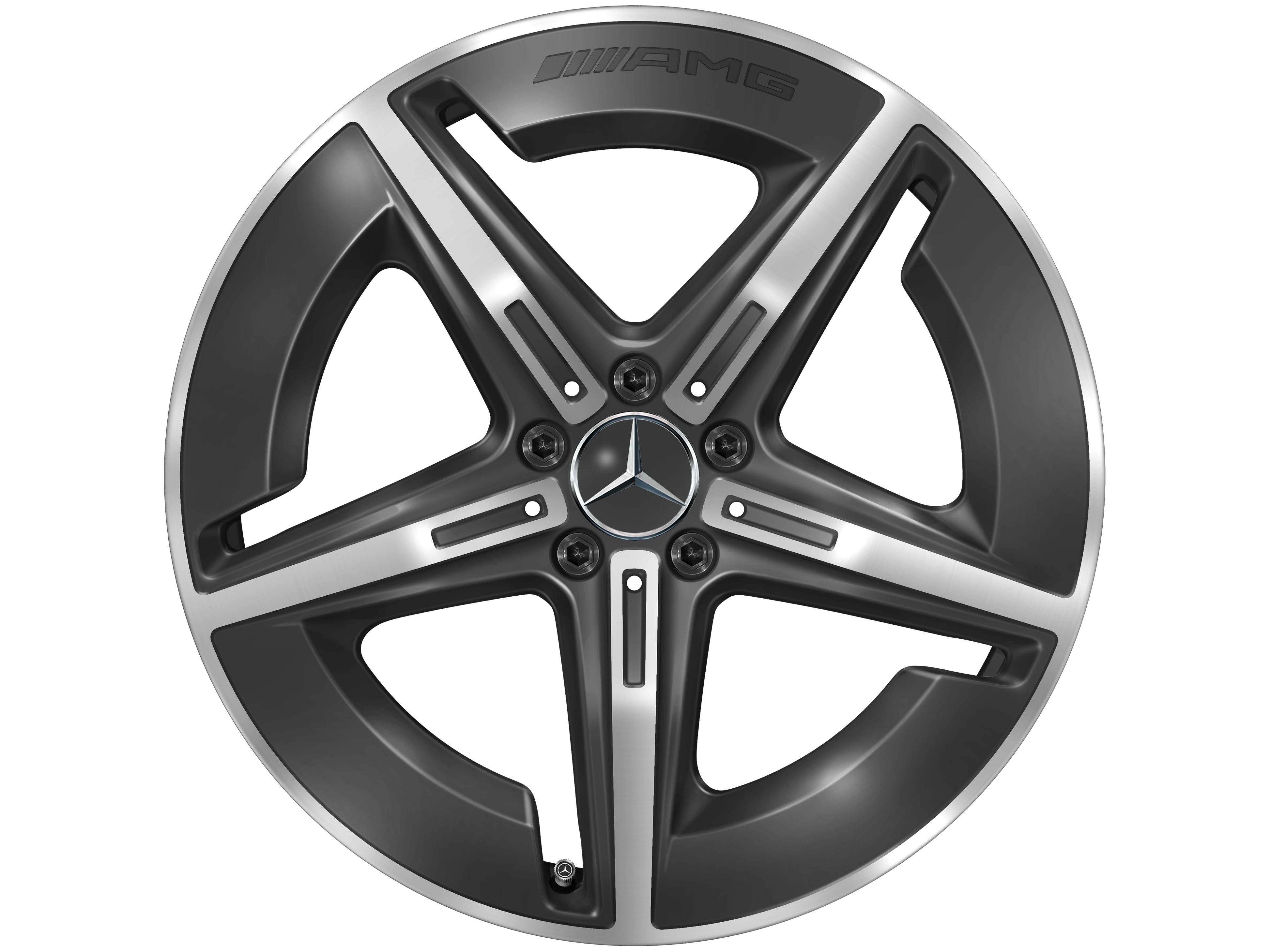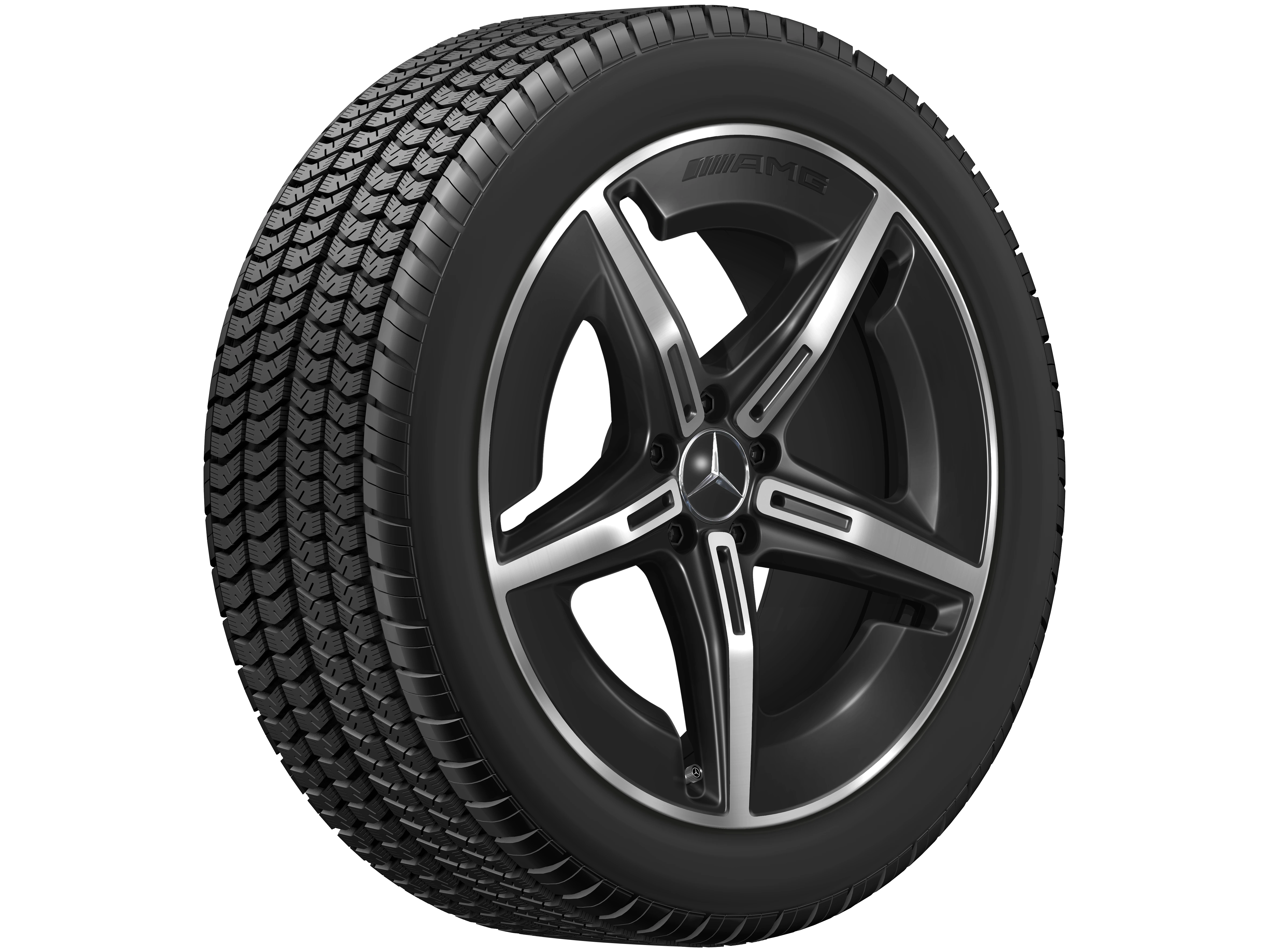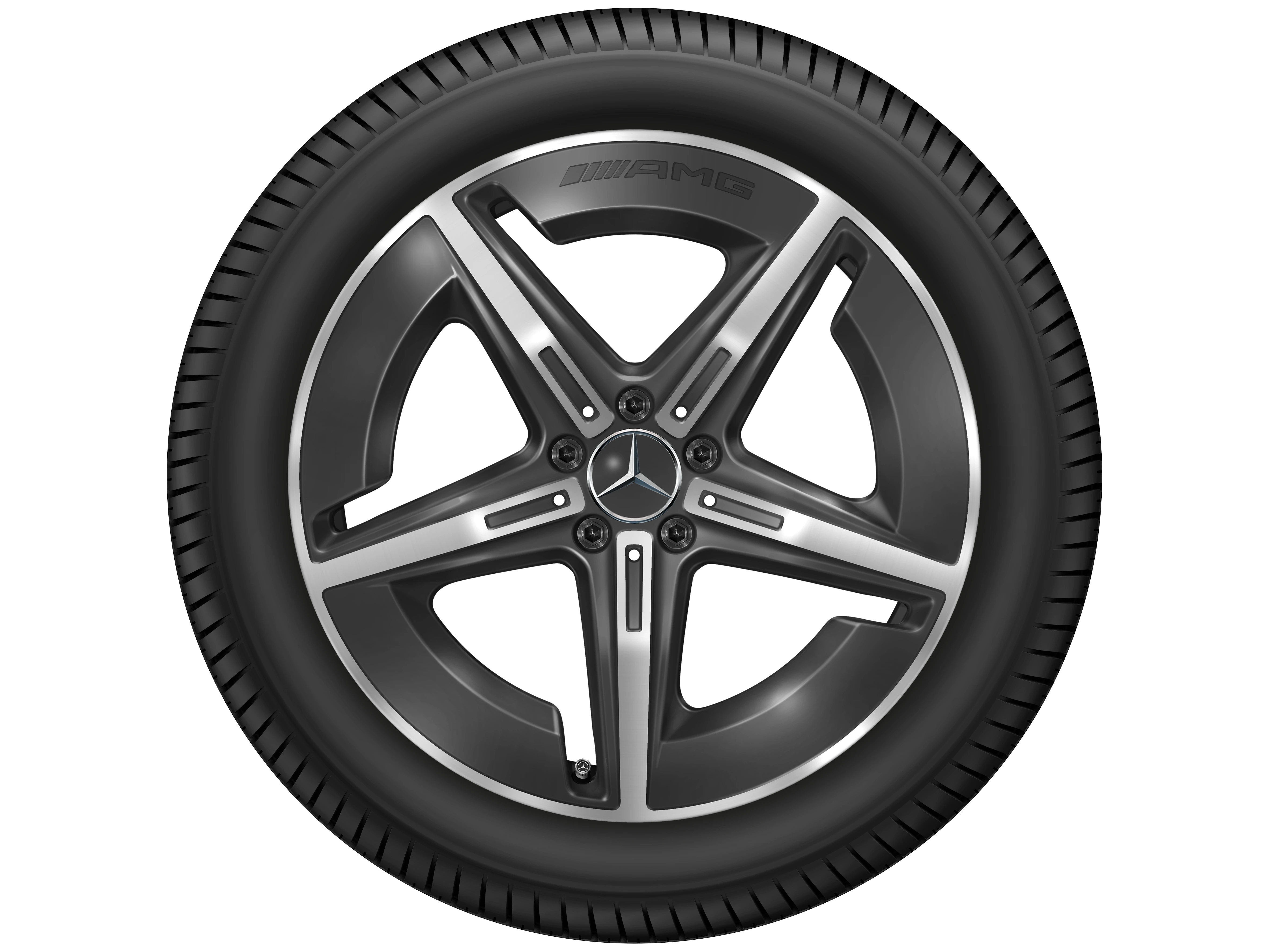 AMG Leichtmetallräder werden ohne Bereifung, Radnabenabdeckungen, Ventilzierkappen, Radschrauben und Radsicherungen ausgeliefert.