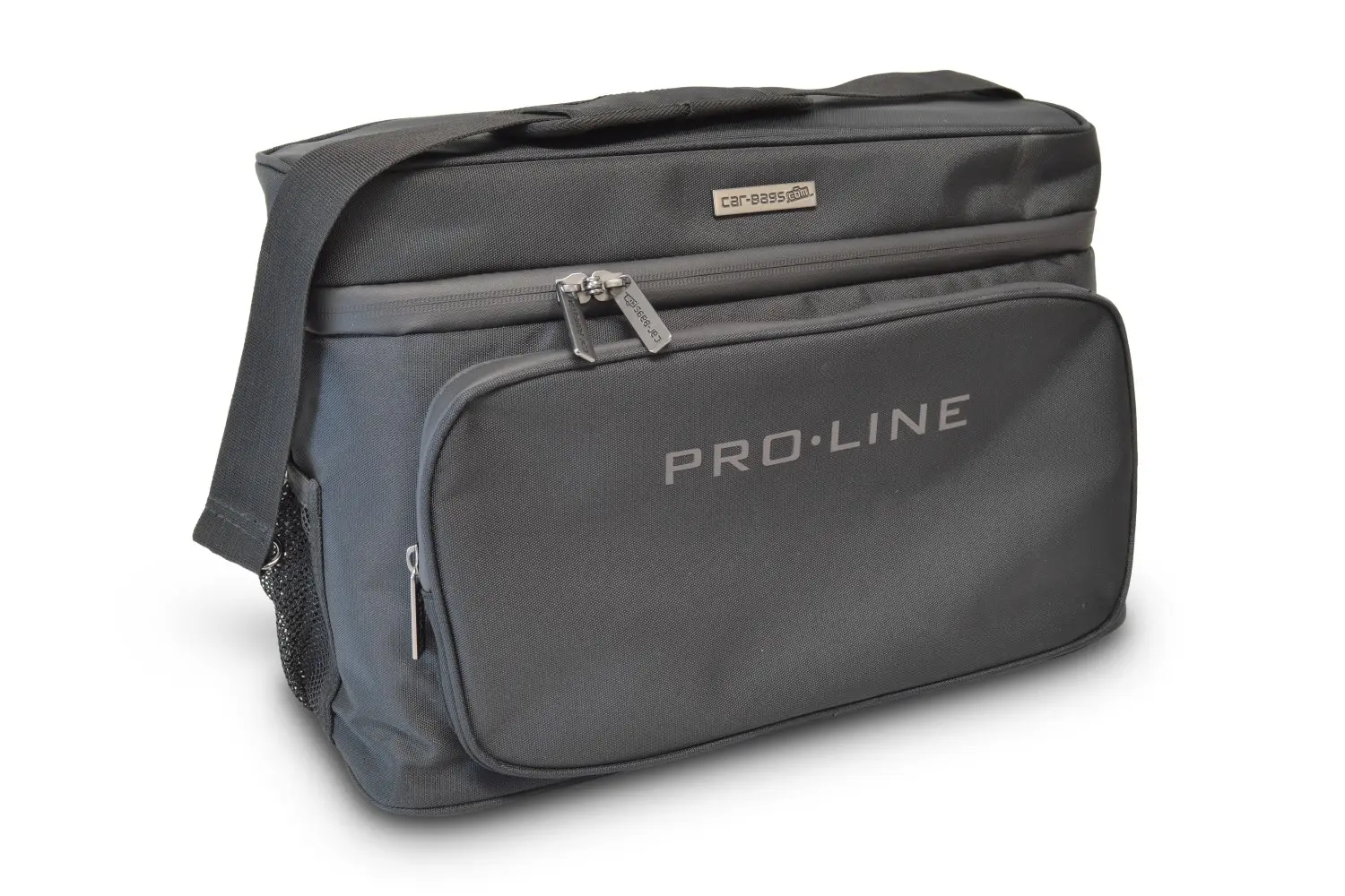 The Pro.Line™ series is the exclusive product line from Car-Bags.com, characterized by its unique design and several special features Product features:High-quality roller bag with telescopic handle and double rubber wheels. Width x height x length = 33 x 23 x 75 cm. Special, finely woven fabric, stylishly accentuated with metal parts in a silky shiny titanium color. Contrasting dark gray lining. Water-repellent zippers. Extensive functionality thanks to two zipped compartments on the outside and several storage compartments on the inside, some of which are removable. Rolling pockets with telescopic handle with locking system. Various protectors ensure durable protection on the bottom part and on sensitive edges and corners.Internal lining with an additional layer of sturdy foam for maximum protection of the contents. Zippers with metal eyelets so that they can be locked with small locks. 2 or 3 lashing straps on the inside to secure the contents.