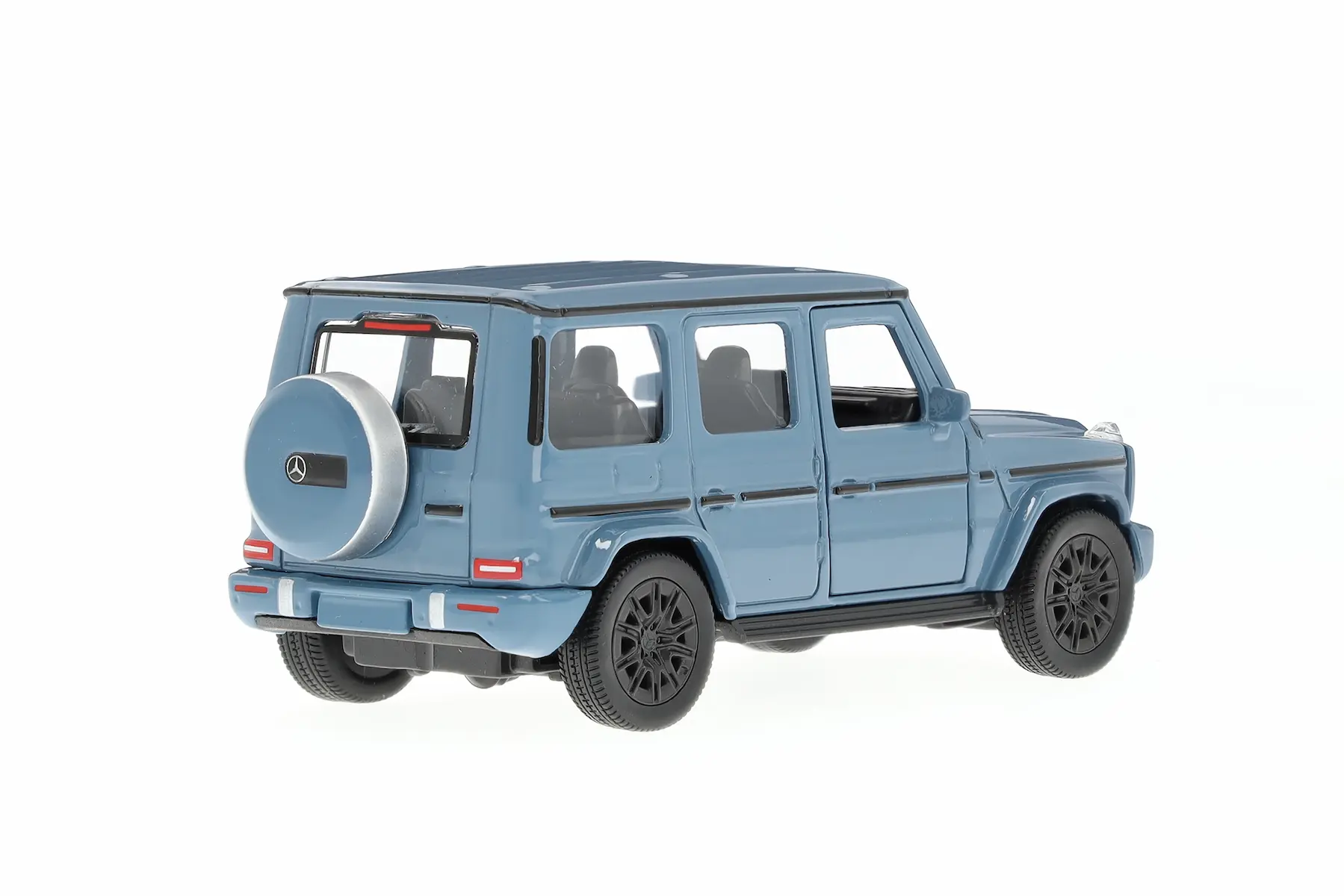 Let the fun begin! As a children's toy, the G-Class makes the hearts of little car lovers beat faster and is a collector's item that is simply fun to play with. The driver and passenger doors of the vehicle, which is painted in an authentic color, can be opened and allow a view of the interior. The toy is also equipped with a pullback function: simply pull the car back and it will drive forwards on its own. The car is supplied in packaging that shows the entire series. Here you can mark which color variant you already own. Below the different colors, there is also a field on the back that offers space for individual texts. A coloring card, which appears after removing the vehicle from the packaging, completes the scope of delivery of the children's toy.