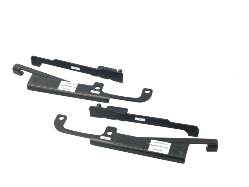 The tailgate damper for the X-Class offers convenient opening and closing without having to hold the heavy tailgate. Mounting the dampers on both sides ensures even opening behavior. The damper consists of black-painted steel brackets and high-quality, maintenance-free hydraulic dampers that require no readjustment. Quick and easy installation without drilling is possible. The tailgate damper is compatible with the water and dust protection as well as all other Mercedes-Benz accessory products. Thanks to the use of high-quality materials, a high level of robustness and durability is guaranteed.