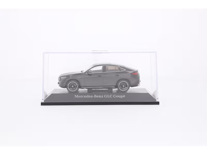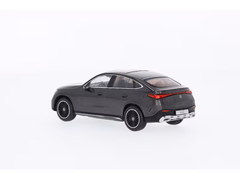 The GLC Coupé AMG Line C254 miniature model on an international collector's scale of 1:43 is in no way inferior to its full-size role model. The model, which is made of die-cast zinc with plastic parts, was produced with the greatest attention to detail based on the original CAD data and painted in authentic color. It consists of over 50 hand-assembled individual parts and impresses with its high-quality decorated and detailed interior. All aspects have been taken into account, from the AMG exterior and the AMG Line interior to the panoramic roof and the 20-inch (50.8 cm) AMG light-alloy wheels in multi-spoke design (RVP). The collector's item is mounted on a printed base and is presented in a presentation box in the Mercedes-Benz design layout.