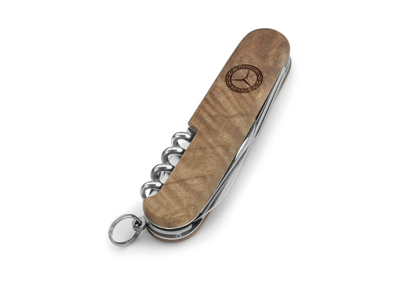 The Spartan Wood pocket knife is a true master of functionality and aesthetics. The scales are made of European walnut wood, which guarantees 100% natural and sustainable production. Thanks to its slim shape and low carbon footprint, it is particularly durable and extremely elegant. Each knife is unique due to its natural grain and features an engraved historical star and Victorinox logo in the handle. It has 10 tools, including a large and a small blade, a can opener, a 3 mm screwdriver, a cap lifter, a 6 mm screwdriver, a wire stripper, a spike drill reamer, a corkscrew and a ring. Whether for everyday use or adventures, the Spartan Wood pocket knife is a robust companion that combines style and sustainability.