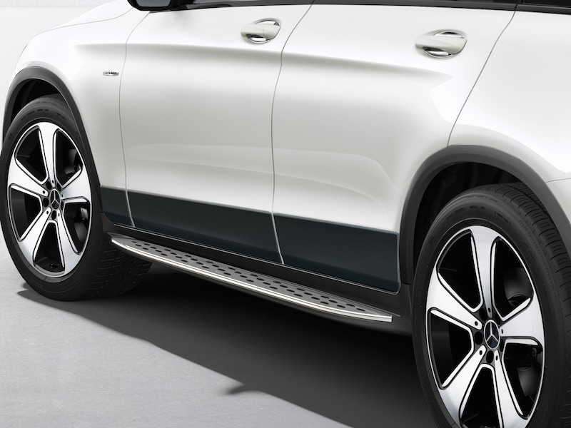 Running board. The running boards in aluminum design are a real eye-catcher. They are positioned on the side at the height of the side sills and facilitate access both at the front and in the rear. Non-slip rubber stoppers provide additional surefootedness.