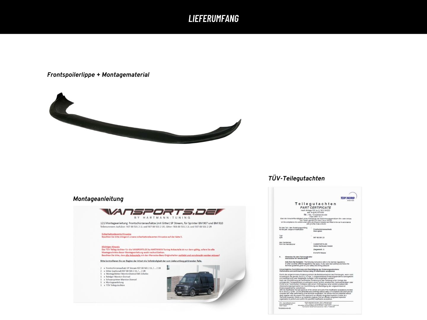 Material: Erstklassiges PU-Rim Befestigung: Angeklebt und unter der originalen Frontschürze verschraubt Genehmigung: Mit TÜV-Teilegutachten : Frontspoilerlippe, - auch geeignet für Fahrzeuge mit AMG Line, Teilegutachten und Montagezubehör