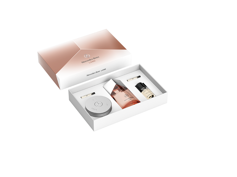 Erde, Meer, Himmel: Die neue Duftkollektion von Mercedes-Benz ist eine Hommage an die Kraft der Natur. LAND verströmt durch erdigen Tonka und süchtig machender Kakaoschale eine Aura von Wärme und Bodenständigkeit. SEA, mit einem Duft von Algen und spritziger Mandarine, erinnert an die unergründlichen Tiefen des Ozeans. AIR hingegen beschwört mit luxuriöser Engelwurz und erfrischenden Zitrusnoten das Gefühl von Freiheit. Alle drei Düfte sind auf einer blumig-holzigen Patchouli-Basis aufgebaut und vereinen sich zu einer ikonischen Trilogie, die ein einzigartiges Dufterlebnis bietet. Das Geschenkset enthält neben dem Eau de Parfum LAND auch Proben der Düfte SEA und AIR. Ein festes Duschgel und ein Öl runden das Set ab.