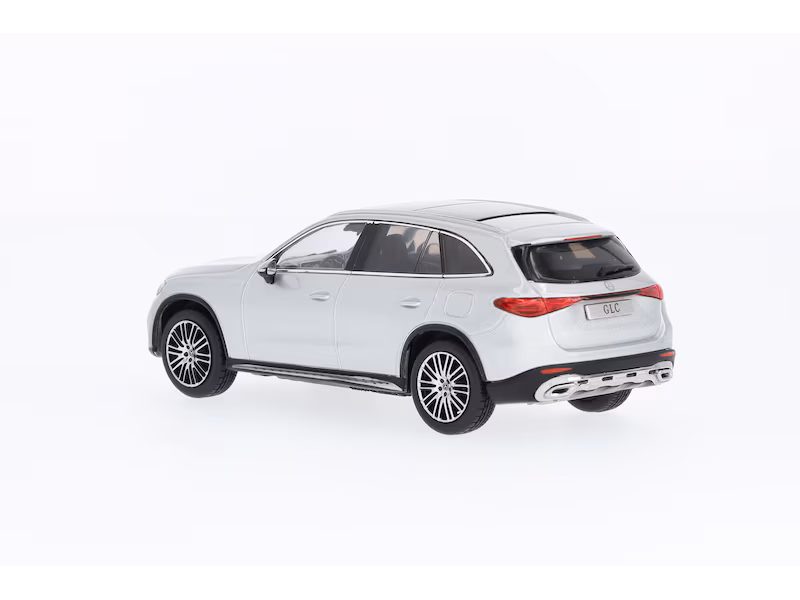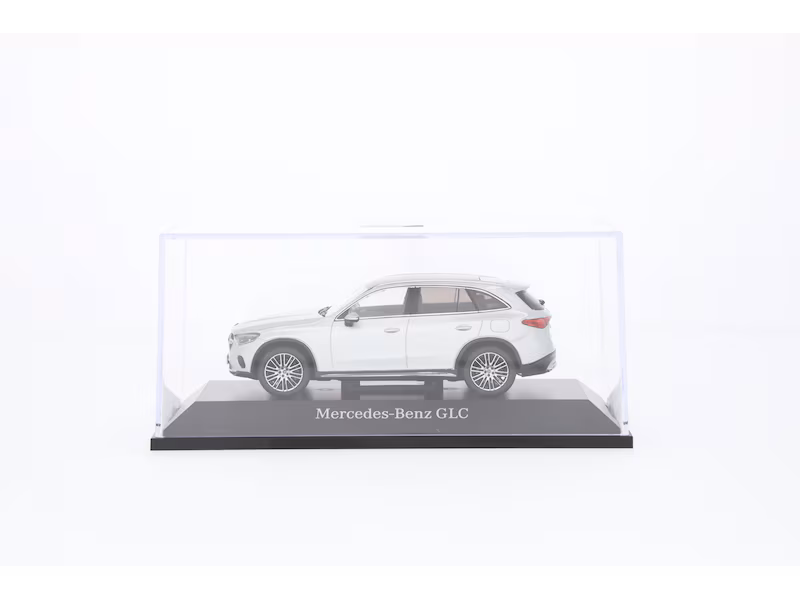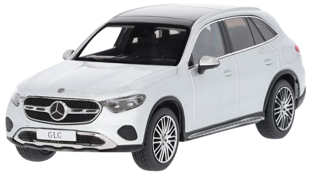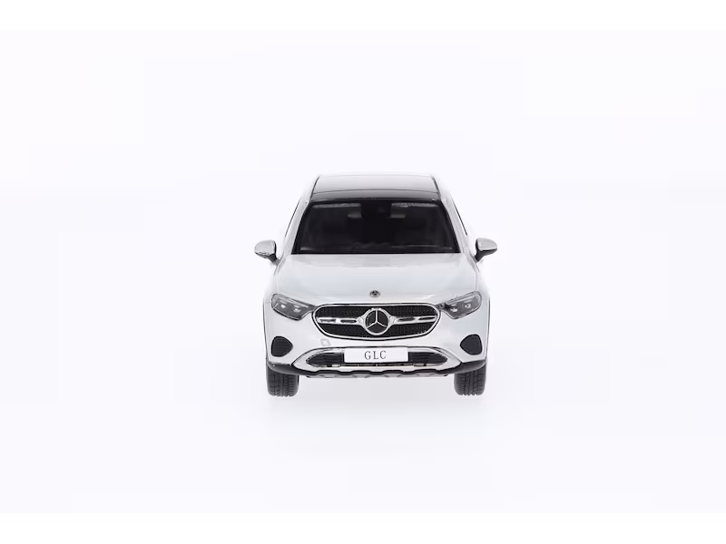 Das Miniaturmodell des GLC AVANTGARDE X254 ist mit einem Panoramadach, 20-Zoll-Leichtmetallrädern im Vielspeichen-Design, AVANTGARDE Exterieur und Interieur aus Leder ausgestattet. Dieses detailgetreue Modell, das aus 50 Einzelteilen handgefertigt wurde, wurde nach den originalen CAD-Daten erstellt und in einem authentischen Farbton lackiert. Auch die originalgetreue Darstellung aller Interieurdetails im luxuriös dekorierten Innenraum ist ein echtes Highlight. Ein echtes Schmuckstück für jede Sammlung! Das Modell im internationalen Sammlermaßstab 1:43 ist auf einem bedruckten Sockel montiert und wird von einer Präsentationsbox im Mercedes-Benz Design umgeben.