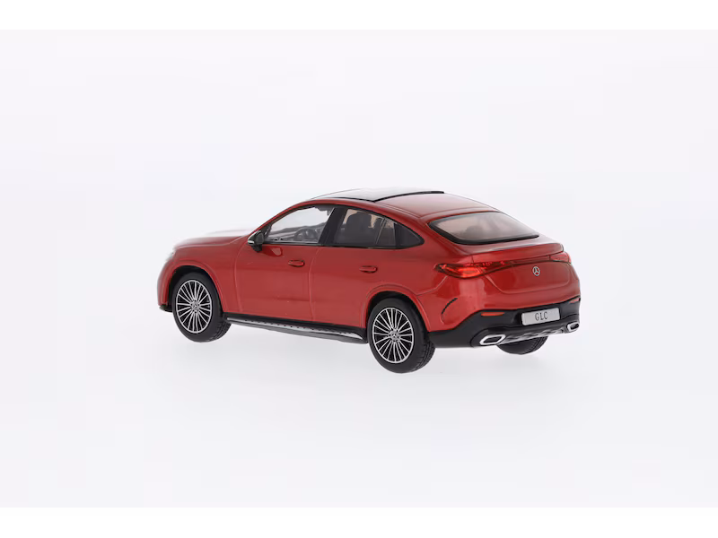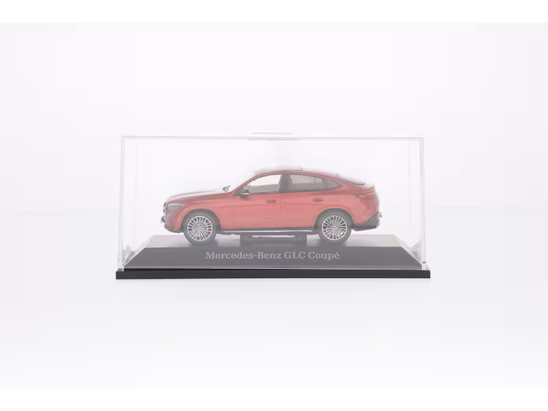 Das GLC Coupé AMG Line C254 Miniaturmodell im internationalen Sammlermaßstab 1:43 ist seinem großen Vorbild in keiner Weise unterlegen. Das Modell, das aus Zinkdruckguss mit Kunststoffteilen hergestellt wird, wurde mit größter Detailgenauigkeit nach den originalen CAD-Daten umgesetzt und in authentischer Farbe lackiert. Es besteht aus über 50 handmontierten Einzelteilen und besticht durch seinen hochwertig dekorierten und detailreichen Innenraum. Alle Aspekte wurden berücksichtigt, vom AMG Exterieur über das AMG Line Interieur bis hin zum Panoramadach und den 20 Zoll (50,8 cm) AMG Leichtmetallrädern im Vielspeichen-Design (RVP). Das Sammlerstück ist auf einem bedruckten Sockel montiert und wird in einer Präsentationsbox im Mercedes-Benz Design-Layout präsentiert.