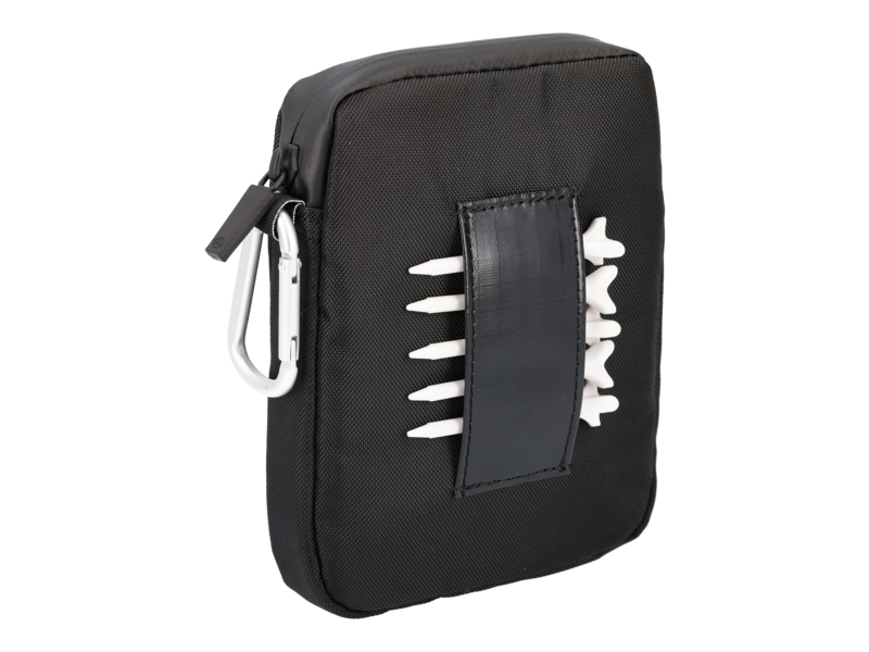 Geschenken Sie Ihrem Lieblingsgolfer eine Freude mit dem kleinen Golf-Geschenkset. Dieses Set besteht aus 2 Zero Friction Golfbällen, 5 Zero Friction Tees sowie einer Pitchgabel inklusive Ballmarker und ist in einer praktischen Tasche aus strapazierfähigem Polyester verpackt. Diese Tasche ist mit einem Karabiner am Golfbag befestigbar und hat eine Größe von 12,5 x 16,5 x 2 cm. Die Farbe der Tasche ist schwarz und besteht aus 100 % Polyester. Ein toller Geschenkartikel für jeden Golfer.