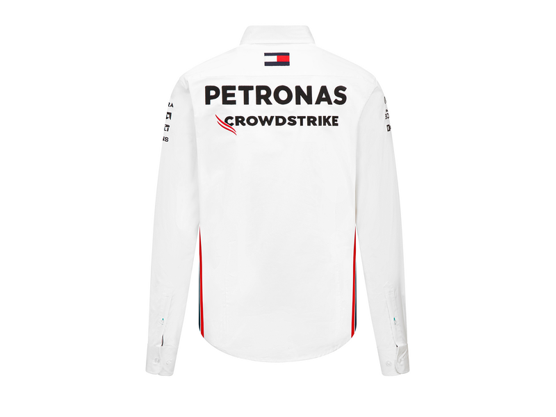Das Mercedes-AMG PETRONAS F1 2023 Team-Hemd für Herren ist der perfekte Begleiter für alle Motorsport-Fans. Dieses Button-down Langarm-Hemd überzeugt durch seinen angenehmen Tragekomfort und sein stilvolles Design. Auf der Vorder- und Rückseite finden sich gestickte Team-/Partnerlogos, auf den Ärmeln gestickte Partnerlogos und Streifendetails an der Seite. Erhältlich in den Farben weiß und den Größen S-XXL ist es ein Muss für jeden Motorsport-Enthusiasten. Teil der Mercedes-Benz Motorsports Collection, ist dieses Hemd eine Hommage an die Welt des Motorsports.