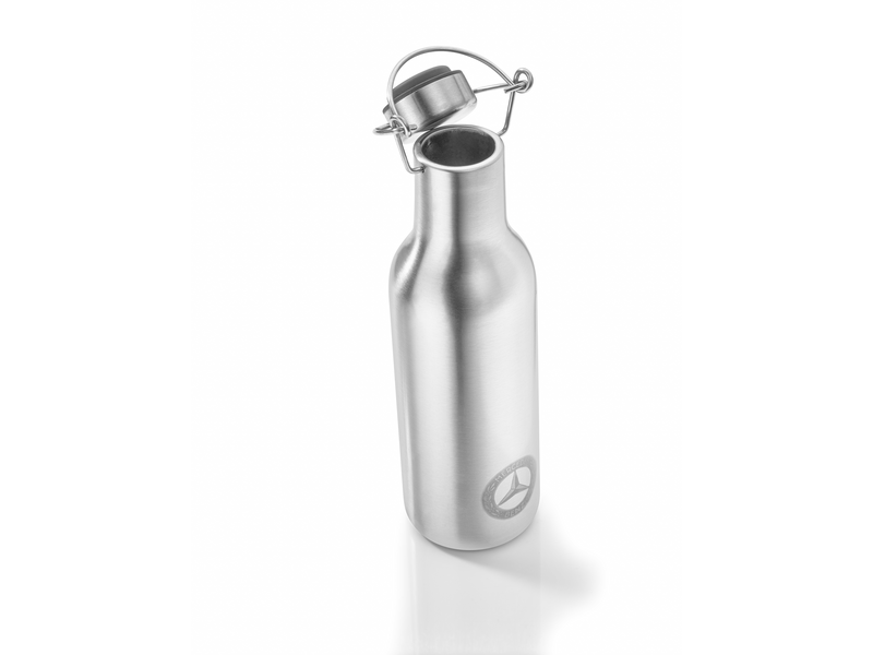 Die Isolierflasche Cool in gebürsteter Edelstahloptik ist der perfekte Begleiter für unterwegs. Mit ihrem Vakuumeffekt hält sie Getränke bis zu 24 Stunden kalt und Tee und Co. über Stunden hinweg warm. Der praktische Deckel schließt dicht und kann nicht verloren gehen. Die Flasche mit einem Fassungsvermögen von 0,7 l ist einfach in der Spülmaschine zu reinigen. Inspiriert von alten Bügelflaschen, ist sie zudem mit einer Gravur eines historischen Sterns und des eva solo Logos versehen. Mit der Isolierflasche Cool aus der Mercedes-Benz Classic Collection ist für Erfrischung unterwegs gesorgt.