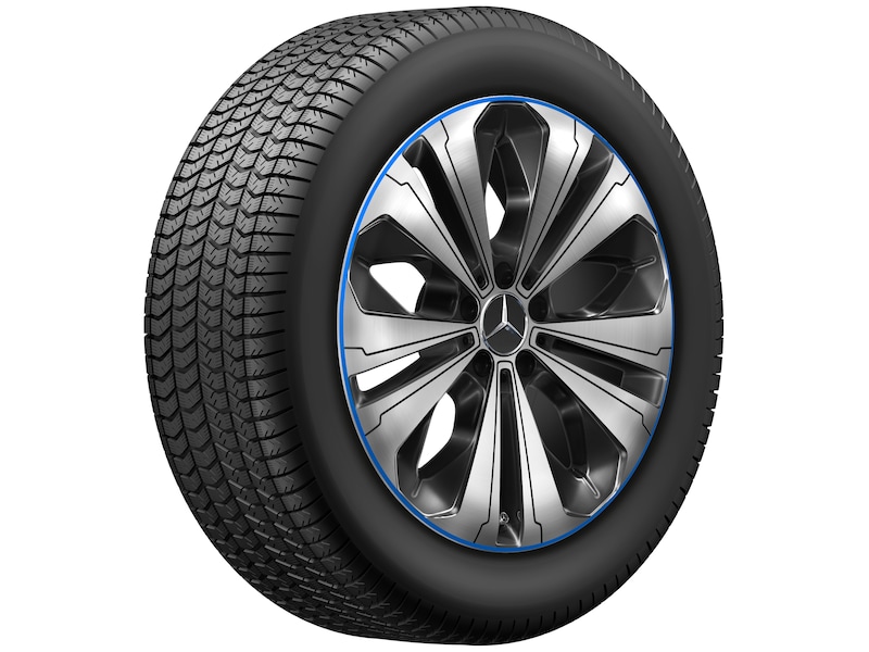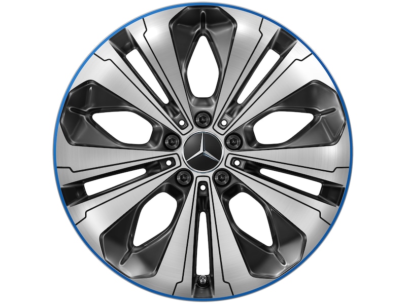 Info sui prodotti "5-Doppelspeichen-Rad Schwarz Glanzgedreht Mit Blauem Felgenhorn"