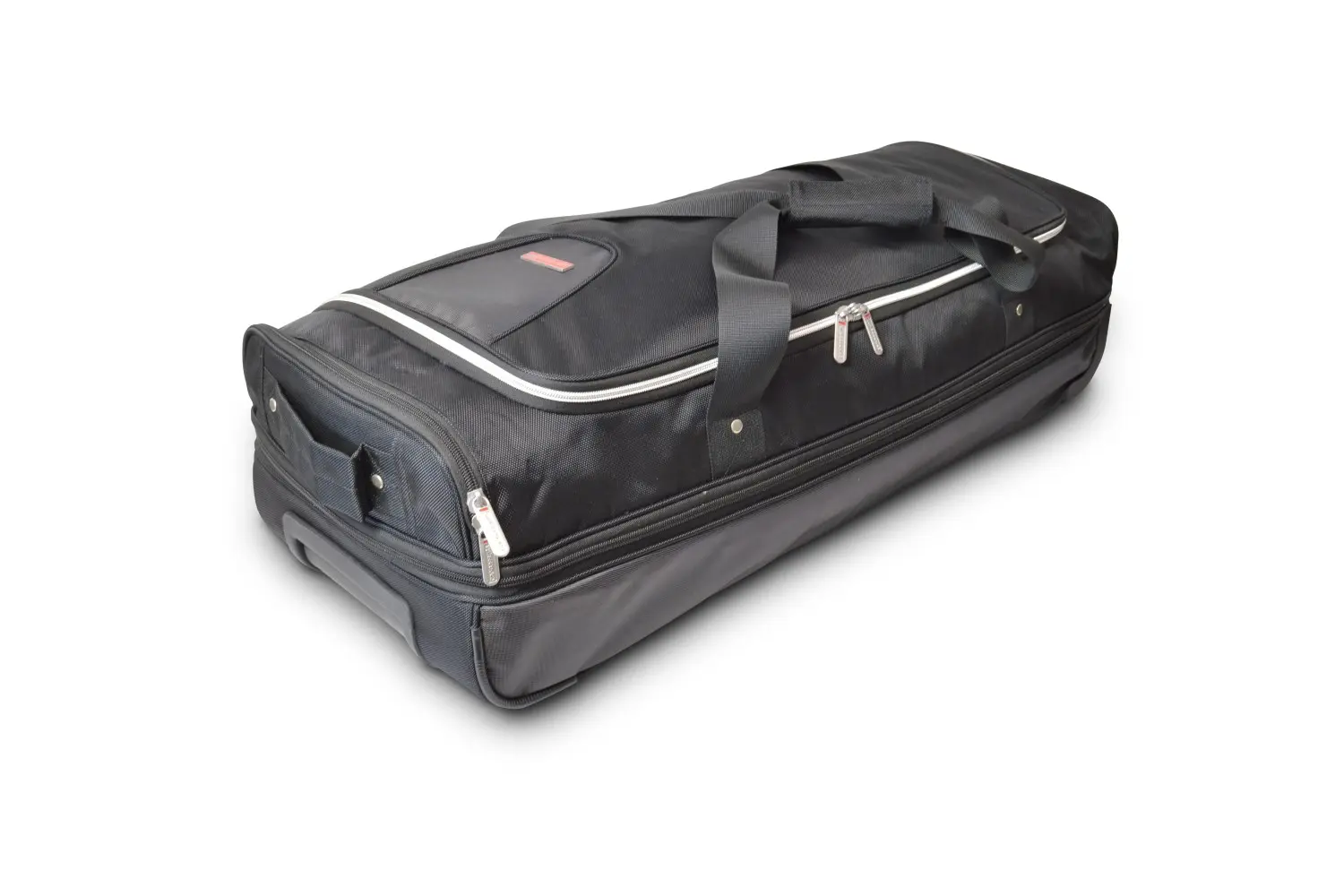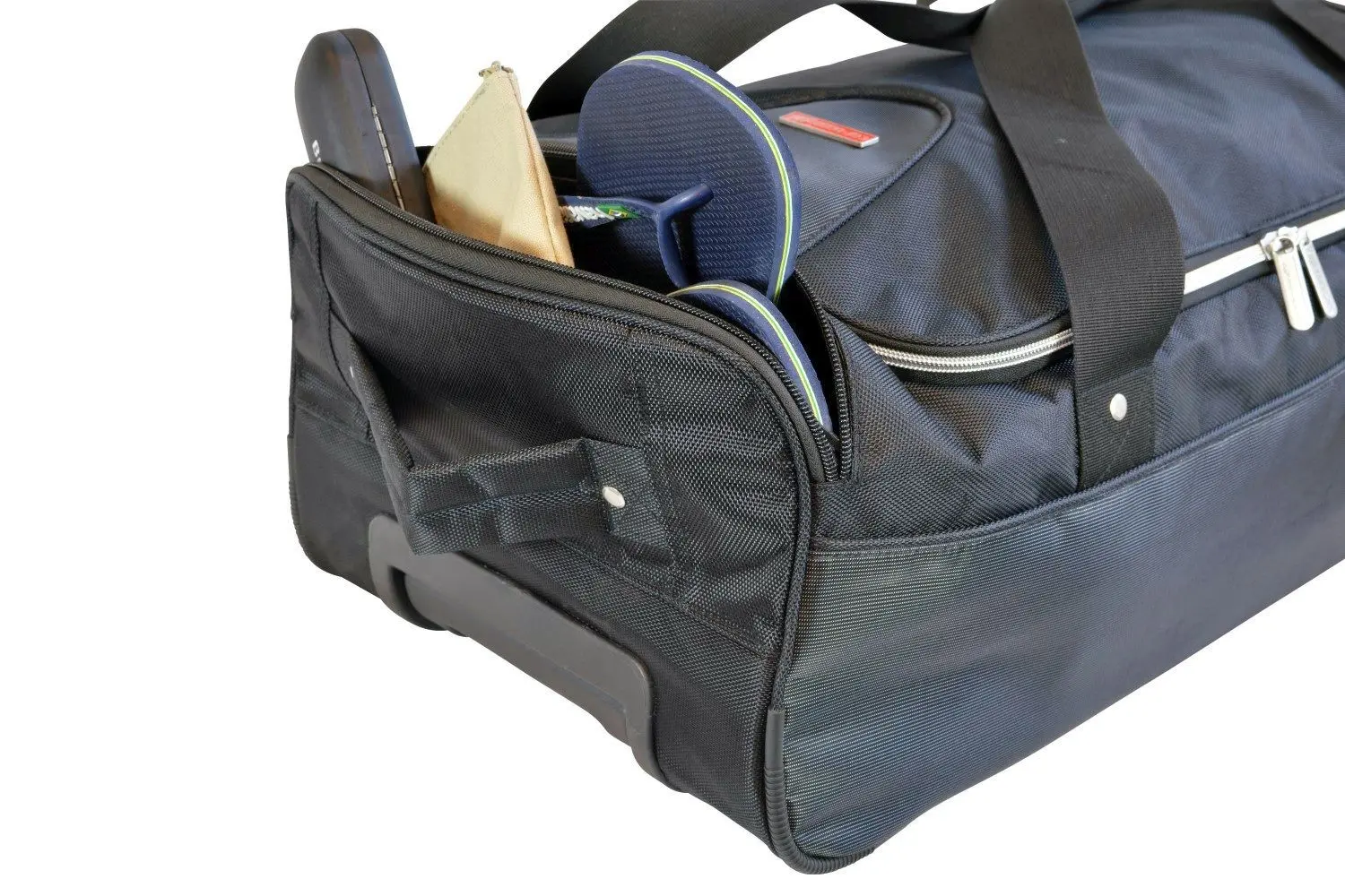 Conveniente e veloce: Fare i bagagli non è mai stato così comodo e veloce, perché sapete che se entra nel set di borse da viaggio Car-Bags.com™, entrerà automaticamente nel bagagliaio. La maggior parte dei set Car-Bags è composta da uno strato inferiore di pratiche borse con ruote e manico telescopico e da uno strato superiore di borse a mano abbinate. Un set di borse da viaggio Car-Bags è fatto su misura per ogni modello di auto. Il set non è quindi composto da una gamma fissa di borse standard, ma le dimensioni dei trolley e delle borse da viaggio sono esattamente adattate al bagagliaio. Ciò significa che lo spazio del bagagliaio viene sfruttato in modo ottimale in termini di altezza, larghezza e lunghezza. Le borse da viaggio di Car-Bags.com sono solitamente larghe 30-35 cm, in modo che i vestiti piegati possano entrare facilmente. Le nostre borse non sono troppo grandi perché quelle grandi sono pesanti e poco maneggevoli. Inoltre, il contenuto delle borse grandi tende ad aggrovigliarsi più facilmente. Caratteristiche del prodotto: Ogni set è personalizzato esattamente per il modello di auto. Diverse protezioni assicurano una protezione duratura sulla parte inferiore e sui bordi e angoli sensibili di ogni borsa. Tutte le borse sono dotate di un pratico scomparto con zip accessibile dall'esterno. Tutte le borse hanno una fodera interna nera con un ulteriore strato di schiuma robusta per la massima protezione del contenuto. Tutte le cerniere sono dotate di occhielli metallici per poter essere chiuse con piccoli lucchetti. Ogni borsa a rotelle è dotata di un manico telescopico e di ruote in gomma con doppio cuscinetto. Ogni borsa a rotelle ha un ulteriore scomparto con zip all'interno. Ogni borsa a rotelle ha 2 o 3 cinghie di fissaggio all'interno per assicurare il contenuto.Ogni borsa a mano ha una tracolla regolabile. Garanzia di 3 anni contro i difetti di fabbricazione. Viaggiare sicuri:Sfrutta al meglio lo spazio del bagagliaio con un set di borse per auto e riduci la necessità di riporre bagagli pericolosi e sciolti nell'abitacolo.Compact storage:Un set di borse per auto può essere completamente ripiegato, a differenza delle valigie rigide, ed è quindi facile da riporre a casa. Ma è anche estremamente pratico a destinazione se le borse vuote occupano il minor spazio possibile.Top quality: Tutte le borse da viaggio Car-Bags sono realizzate in tessuto di poliestere di alta qualità. Robusto, durevole, idrorepellente e facile da pulire. La fodera interna con uno strato intermedio di robusta pellicola di schiuma offre la massima protezione per il contenuto. Ogni trolley è dotato di ruote a doppia faccia con pneumatici in gomma per garantire uno scorrimento silenzioso e fluido per tutta la durata della borsa. Car-Bags garantisce per 3 anni contro i difetti di fabbricazione.
