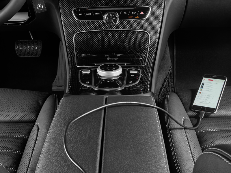 Controllate comodamente il vostro iPod® o iPhone® tramite il volante multifunzione e l'impianto audio. Visualizzate i brani musicali, gli artisti o le cartelle di file nel quadro strumenti o nel monitor dell'impianto audio. Ricarica il dispositivo tramite l'interfaccia universale nella console centrale. La lunghezza del cavo è di 1 m. Si prega di notare che la funzionalità video (segnali video analogici) non è supportata. Questo prodotto è adatto ai modelli di iPod® e iPhone® con connettore Apple Lightning. Il collegamento si effettua nella console centrale (interfaccia multimediale) o, in alternativa, nel bracciolo centrale del sedile posteriore nei veicoli con sistema di intrattenimento del sedile posteriore (codice 864/P46).