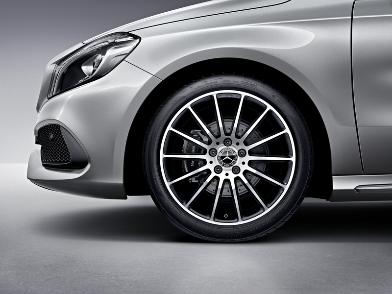 Info sui prodotti "Cerchio multirazze AMG, 45,7 cm (18 pollici), flangia del cerchio ad alta lucentezza, CLA/ Classe B/ Classe A, 225/40 R18/, nero, A17640102007X72"