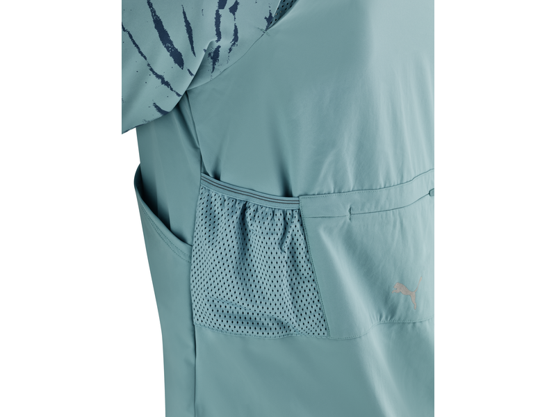 La giacca a vento turchese da donna della Mercedes-Benz Collection di PUMA è un capo tuttofare perfetto per le giornate di tempesta. È realizzata in tessuto tecnico DRYCELL, che protegge dall'umidità e la allontana in modo affidabile dalla pelle. Il girovita è dotato di una coulisse elastica e di asole elastiche per i pollici per garantire un elevato livello di comfort. La giacca è inoltre dotata di due inserti in rete nascosti sul retro delle spalle per migliorare la ventilazione e aumentare il comfort. Piccoli oggetti come chiavi, smartphone o contanti possono essere riposti nelle due grandi tasche laterali sul davanti e nelle due piccole tasche laterali in rete con coulisse elastica sul retro. Sul retro è presente anche una tasca centrale con zip. Questa giacca a vento è disponibile nelle taglie XS-XL e può essere lavata delicatamente a 30°C.