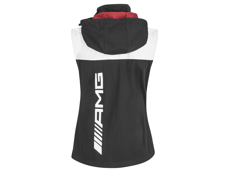 Il gilet softshell AMG da donna è il capo perfetto per qualsiasi condizione atmosferica. Realizzato in softshell laminato a 3 strati antivento e traspirante, garantisce una sensazione di piacevole asciutto anche durante lo sforzo. Il gilet è dotato di un cappuccio con zip e interno rosso, che può essere facilmente regolato grazie alla coulisse con cordoncino rosso e fermacorda nero. La cerniera anteriore impermeabile di colore rosso, decorata con un tirazip nero con logo AMG 3D, garantisce ulteriore sicurezza e comfort. Nelle tasche laterali è possibile riporre piccoli oggetti come le chiavi, mentre la tasca interna laminata offre una pratica uscita per i cavi multimediali. Anche i dettagli del gilet sono unici: una stampa nera del logo AMG 3D sulla parte sinistra del petto e una stampa bianca verticale del logo AMG sulla schiena completano perfettamente il design. Questo gilet in softshell è disponibile nelle taglie XXS-XL e deve essere lavato a 30°C con un ciclo delicato.