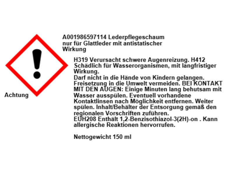 Info sui prodotti "Lederpflegeschaum, A001986597114"