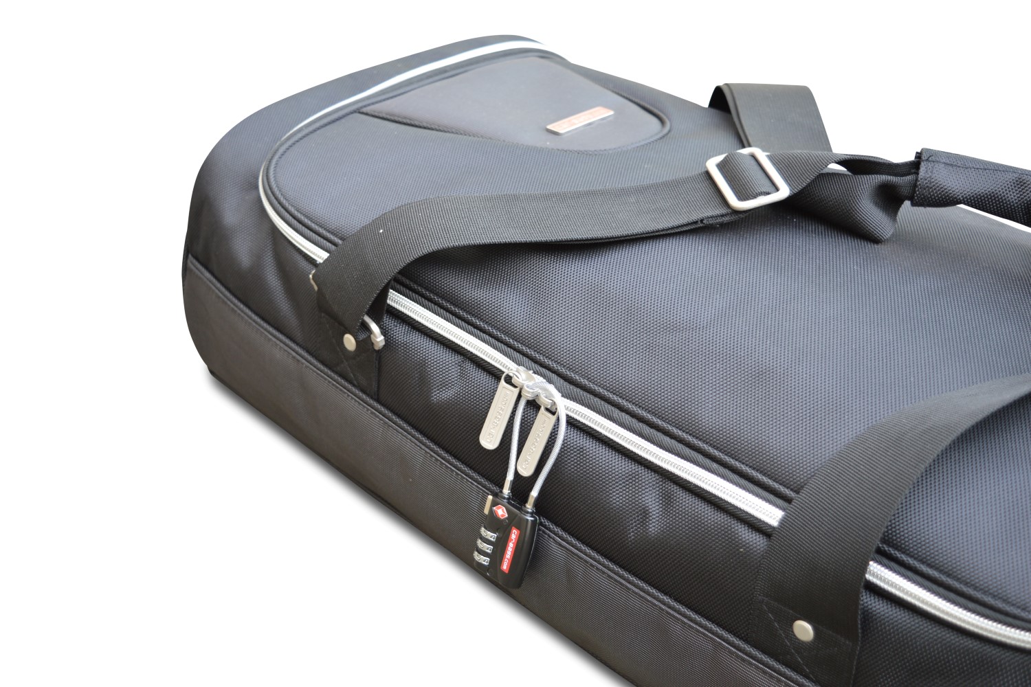 Conveniente e veloce: Fare i bagagli non è mai stato così comodo e veloce, perché sapete che se entra nel set di borse da viaggio Car-Bags.com™, entrerà automaticamente nel bagagliaio. La maggior parte dei set Car-Bags è composta da uno strato inferiore di pratiche borse con ruote e manico telescopico e da uno strato superiore di borse a mano abbinate. Un set di borse da viaggio Car-Bags è fatto su misura per ogni modello di auto. Il set non è quindi composto da una gamma fissa di borse standard, ma le dimensioni dei trolley e delle borse da viaggio sono esattamente adattate al bagagliaio. Ciò significa che lo spazio del bagagliaio viene sfruttato in modo ottimale in termini di altezza, larghezza e lunghezza. Le borse da viaggio di Car-Bags.com sono solitamente larghe 30-35 cm, in modo che i vestiti piegati possano entrare facilmente. Le nostre borse non sono troppo grandi perché quelle grandi sono pesanti e poco maneggevoli. Inoltre, il contenuto delle borse grandi tende ad aggrovigliarsi più facilmente. Caratteristiche del prodotto: Ogni set è personalizzato esattamente per il modello di auto. Diverse protezioni assicurano una protezione duratura sulla parte inferiore e sui bordi e angoli sensibili di ogni borsa. Tutte le borse sono dotate di un pratico scomparto con zip accessibile dall'esterno. Tutte le borse hanno una fodera interna nera con un ulteriore strato di schiuma robusta per la massima protezione del contenuto. Tutte le cerniere sono dotate di occhielli metallici per poter essere chiuse con piccoli lucchetti. Ogni borsa a rotelle è dotata di un manico telescopico e di ruote in gomma con doppio cuscinetto. Ogni borsa a rotelle ha un ulteriore scomparto con zip all'interno. Ogni borsa a rotelle ha 2 o 3 cinghie di fissaggio all'interno per assicurare il contenuto.Ogni borsa a mano ha una tracolla regolabile. Garanzia di 3 anni contro i difetti di fabbricazione. Viaggiare sicuri:Sfrutta al meglio lo spazio del bagagliaio con un set di borse per auto e riduci la necessità di riporre bagagli pericolosi e sciolti nell'abitacolo.Compact storage:Un set di borse per auto può essere completamente ripiegato, a differenza delle valigie rigide, ed è quindi facile da riporre a casa. Ma è anche estremamente pratico a destinazione se le borse vuote occupano il minor spazio possibile.Top quality: Tutte le borse da viaggio Car-Bags sono realizzate in tessuto di poliestere di alta qualità. Robusto, durevole, idrorepellente e facile da pulire. La fodera interna con uno strato intermedio di robusta pellicola di schiuma offre la massima protezione per il contenuto. Ogni trolley è dotato di ruote a doppia faccia con pneumatici in gomma per garantire uno scorrimento silenzioso e fluido per tutta la durata della borsa. Car-Bags garantisce per 3 anni contro i difetti di fabbricazione.