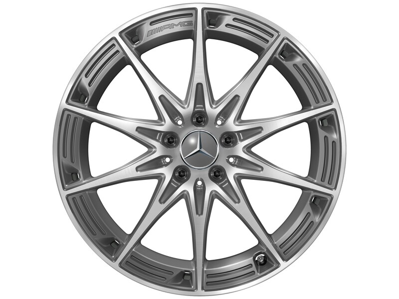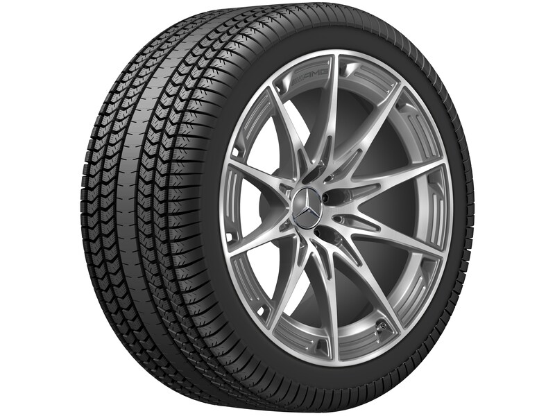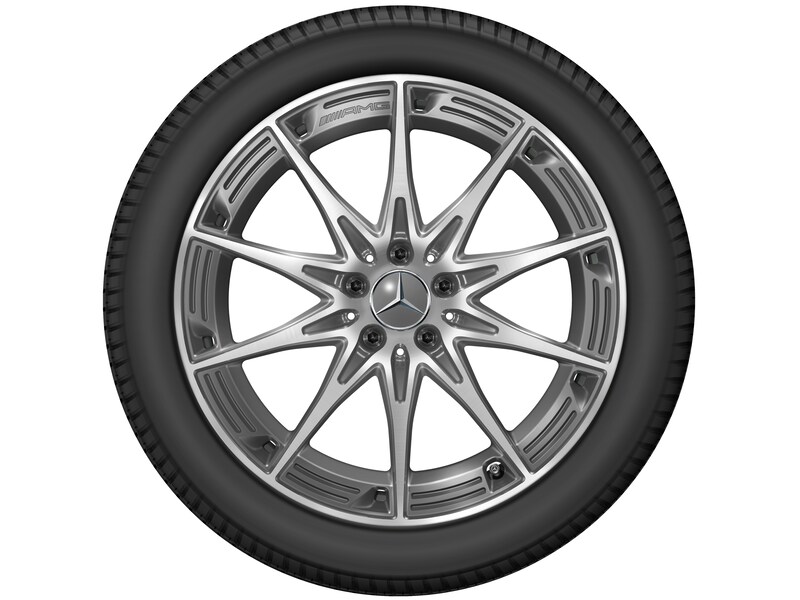 Questa ruota completa è progettata in modo ideale per le condizioni stradali invernali. Il cerchio è costituito da una ruota in alluminio a 10 razze AMG grigio tantalio lucidato.