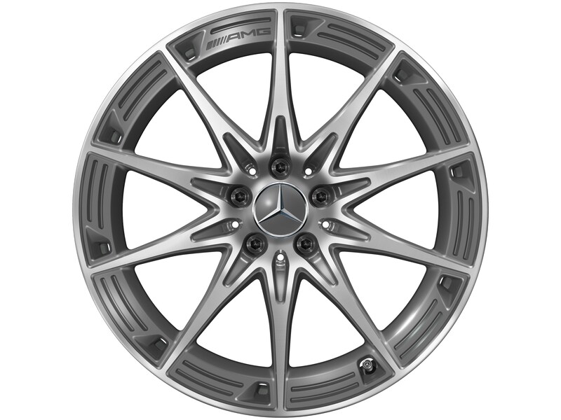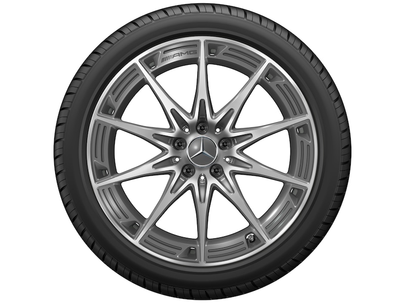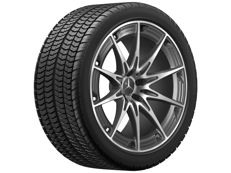 Questa ruota completa è ideale per le condizioni stradali invernali. Il cerchio è costituito da una ruota AMG a più razze verniciata in grigio tantalio con finitura lucida.