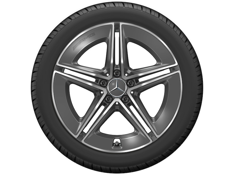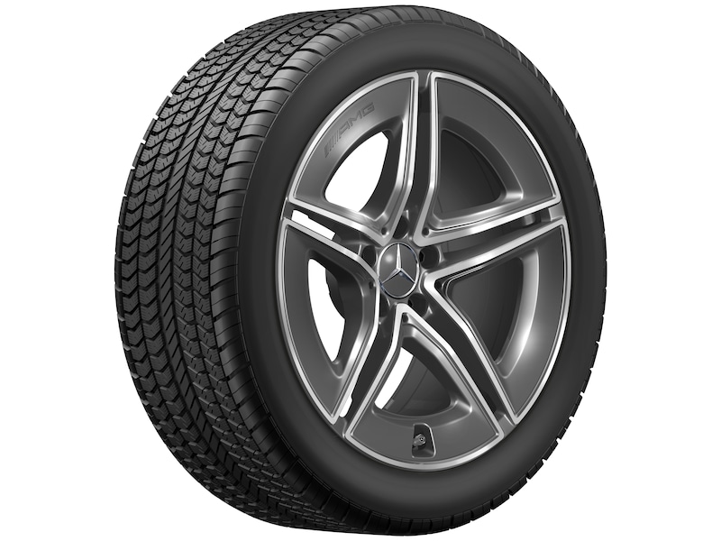 Questa ruota completa è ideale per le condizioni stradali invernali. Il cerchio è costituito da una ruota a 5 doppie razze AMG ad alta lucentezza in alluminio grigio tantalio.
