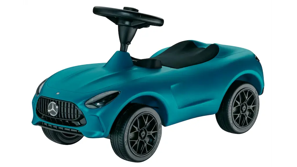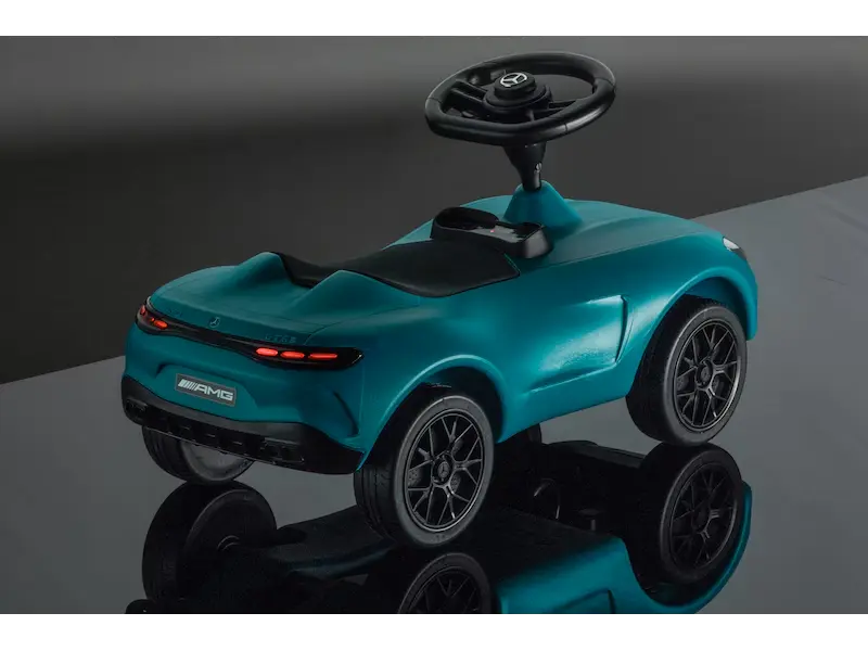 Divertimento di guida frenetico per i più piccoli: il giocattolo cavalcabile per bambini Bobby-AMG GT è ispirato alla nuova Mercedes-AMG GT e offre prestazioni di guida per bambini a partire dai 18 mesi. L'illuminazione del veicolo è particolarmente interessante: i fari anteriori e le luci posteriori in vetro trasparente sono dotati di una funzione di illuminazione a LED e di una funzione di indicatore di direzione che possono essere controllate separatamente. È presente anche un interruttore on/off per le luci dello scivolo per bambini. Il vano batterie per le luci (4 batterie AA) si trova sotto il cuscino rimovibile del sedile. Oltre al volante in design Mercedes-AMG, anche la griglia del radiatore, la grembiulatura anteriore e il diffusore posteriore sono realizzati come pezzi singoli. I cerchi neri opachi nel nuovo design AMG completano l'aspetto sportivo e sono dotati di pneumatici whisper con battistrada Michelin. Grazie al foglio di adesivi allegato con la grafica per il display, lo stemma AMG per il cofano, la stella per il portellone del bagagliaio e i pulsanti satellitari sul volante, il piacere di guida autentico è garantito.
