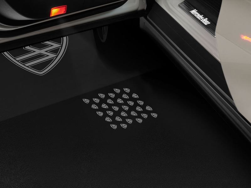 Con il proiettore LCD con motivo animato Mercedes-Maybach, la vostra Mercedes-Benz diventa un'attrazione visiva ancora prima di salire a bordo. Questo set in due parti proietta un'animazione del motivo Mercedes-Maybach sul pavimento accanto alla porta aperta del conducente o del passeggero e si attiva automaticamente all'apertura della porta. Il proiettore si spegne dopo un massimo di 600 secondi. A seconda del modello di veicolo, il set è disponibile anche per le porte posteriori, per fornire una luce aggiuntiva per entrare e uscire comodamente. Il proiettore LCD non solo sostituisce le normali luci di uscita delle portiere, ma costituisce anche un attraente richiamo visivo in ambienti bui. Si consiglia di far eseguire l'installazione da un partner Mercedes-Benz.