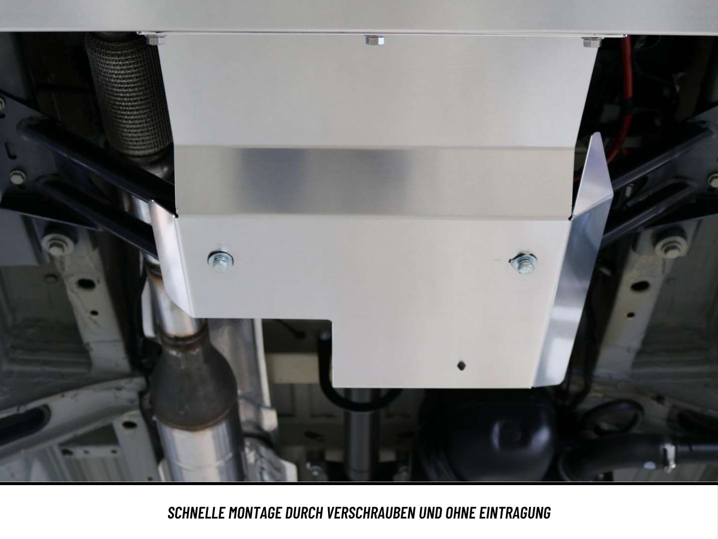 Attenzione! Questo elemento è collegato alle protezioni antincastro del motore e del cambio e funge da prolungamento di queste due parti. Il montaggio può essere effettuato solo con queste due parti. Questa protezione antincastro è stata progettata appositamente per i veicoli con cambio a trazione integrale. La protezione antincastro in alluminio (6 mm) è adatta al Mercedes-Benz Sprinter (modello 907) a partire dal modello 06/2018 per i veicoli con motore a 6 cilindri. L'installazione è semplice: si avvita (tempo di installazione circa 1 ora). Questa protezione antincastro non è destinata all'uso su terreni difficili. La fornitura comprende le istruzioni di montaggio, il materiale di montaggio e il certificato di omologazione. Non è richiesta la registrazione TÜV.