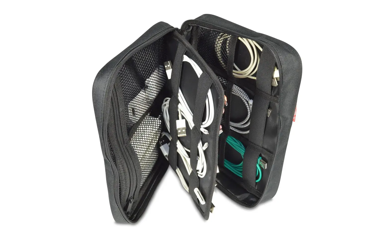 - Praktische Tasche zur Organisation und Aufbewahrung all Ihrer Kabel, Stecker und Ladegeräte.