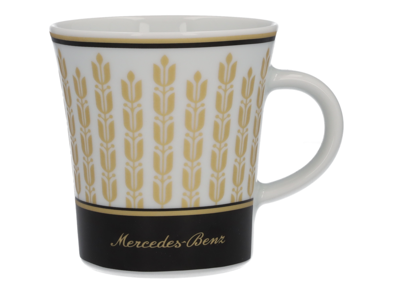 Schwarz und Weiß: Dieses Set beinhaltet zwei Kaffeetassen, eine in elegantem Weiß und die andere in klassischem Schwarz. Goldene Highlights in Form von Lorbeerblättern und ein Mercedes-Benz Logo verleihen den Tassen ihren einzigartigen Charme. Sie sind aus hochwertigem Porzellan gefertigt und vollständig vegan, da sie ohne Tierknochenasche hergestellt wurden. Beide Tassen können etwa 0,3 l fassen und sind spülmaschinenfest.