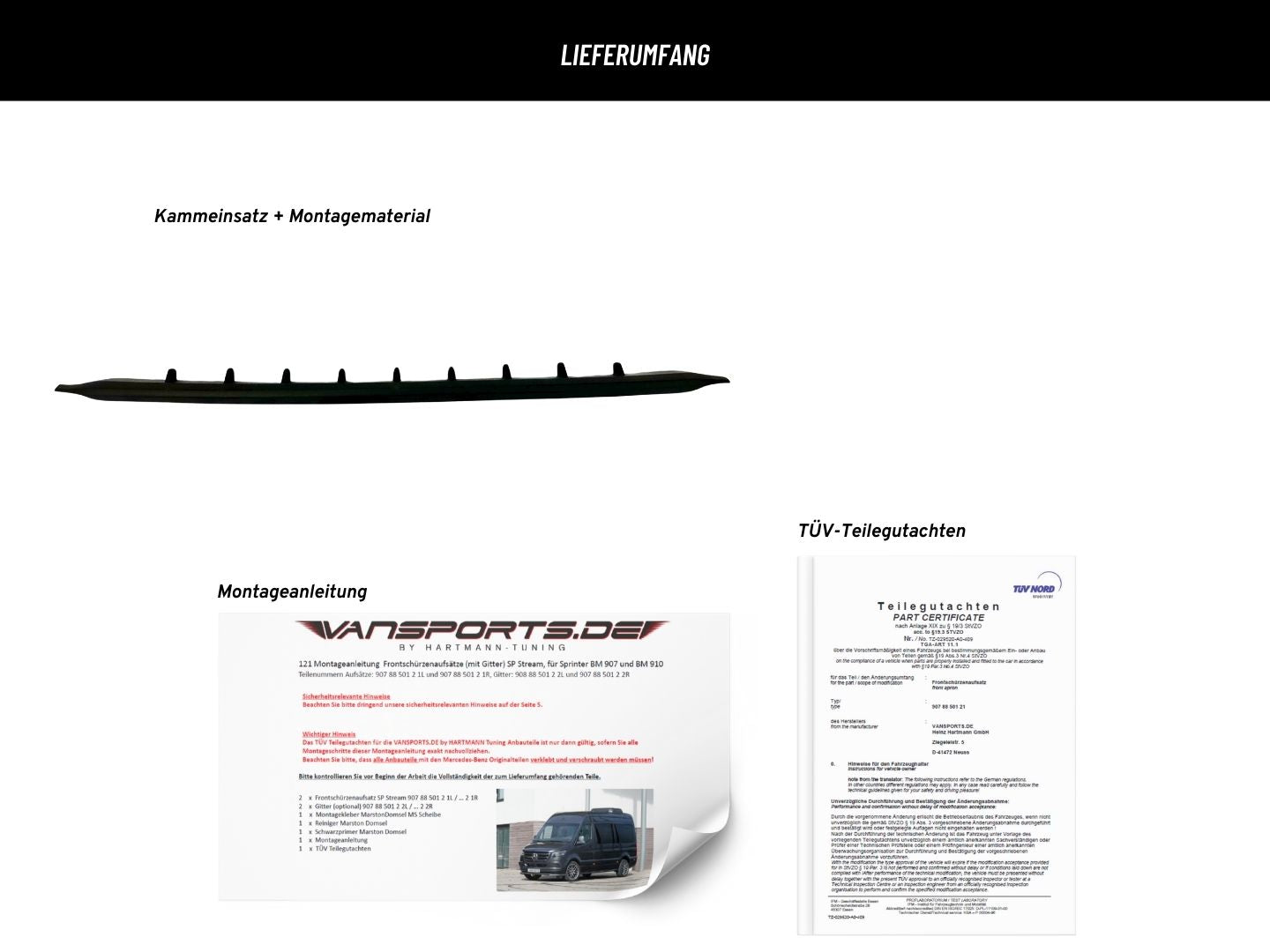 Material: Aus erstklassigem PU-Rim gefertigt Befestigung: Wird an der Original-Frontschürze angeklebt Genehmigung: Mit TÜV-Teilegutachten Im Paket enthalten: Kamm-Einsatz, der auch für Fahrzeuge mit AMG Line geeignet ist, Teilegutachten und Montagezubehör